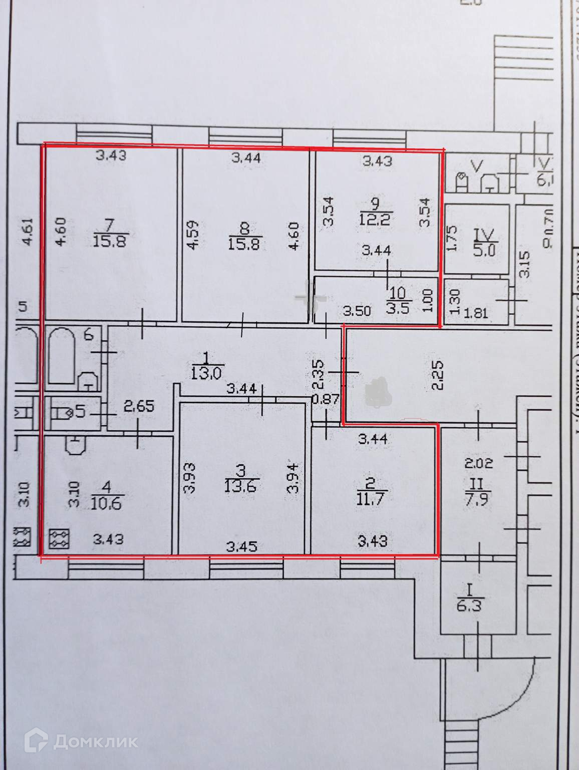 Общая площадь  99.8 кв.м., требует полного ремонта.