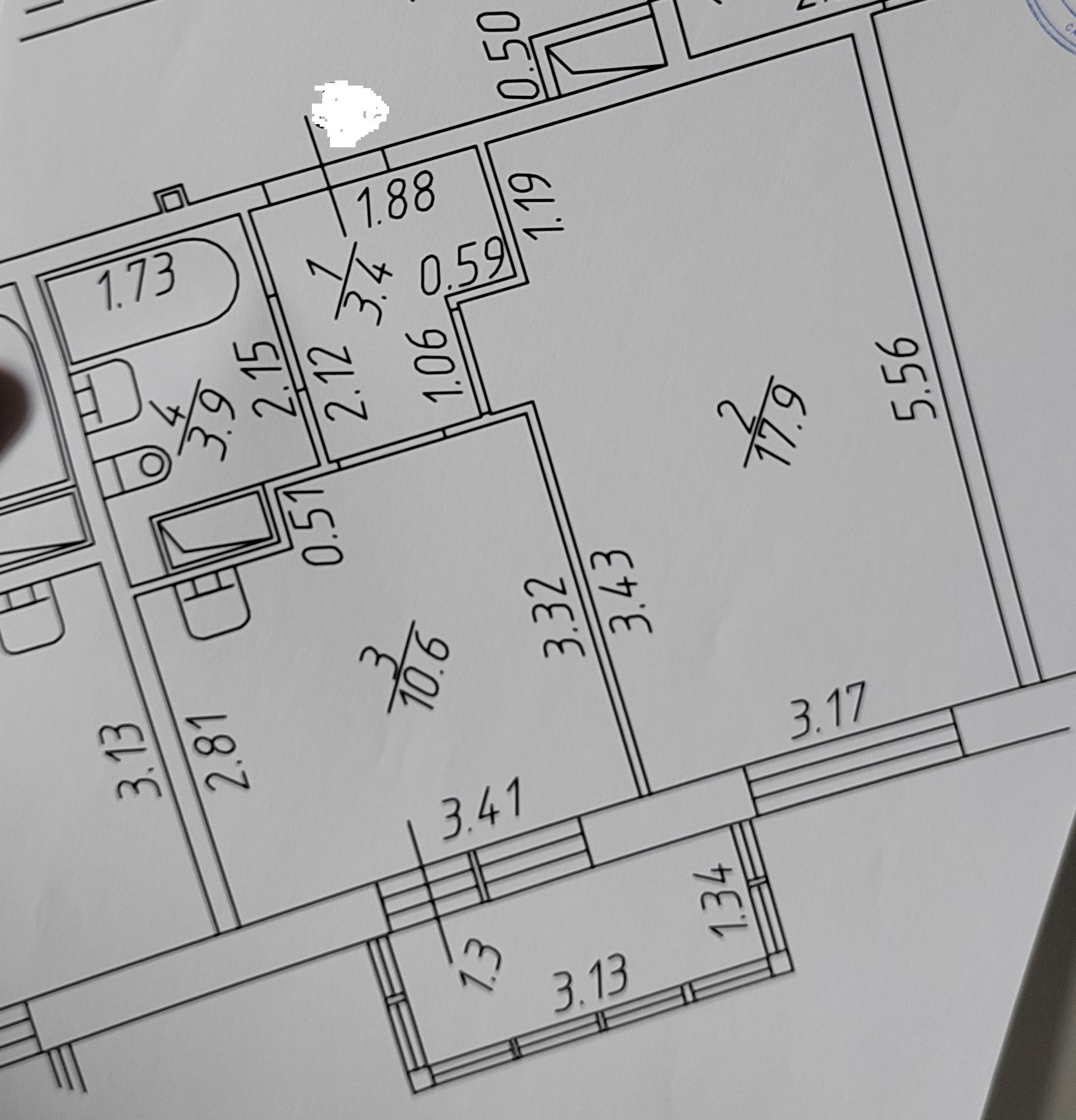 Жилая площадь 17.9 м2