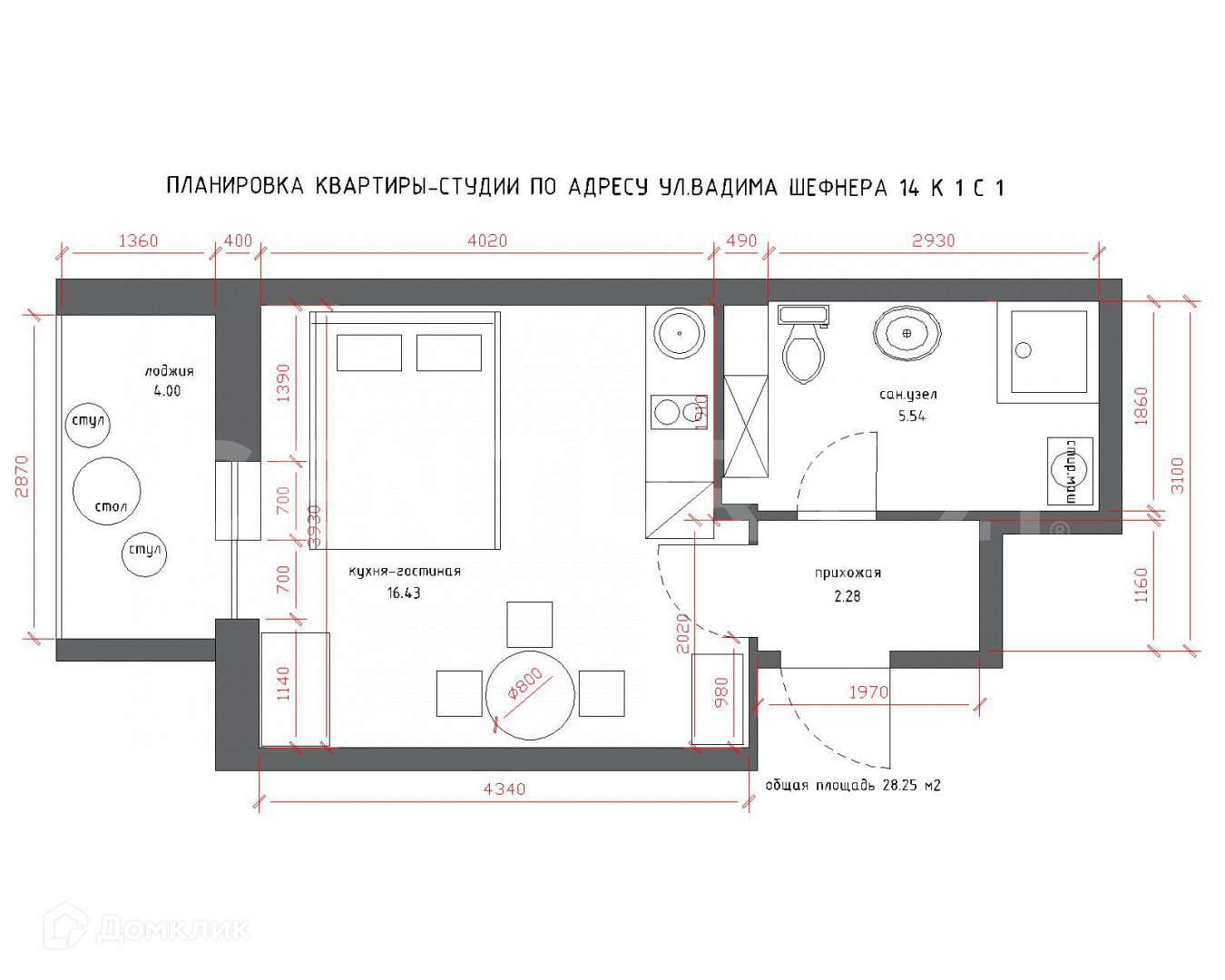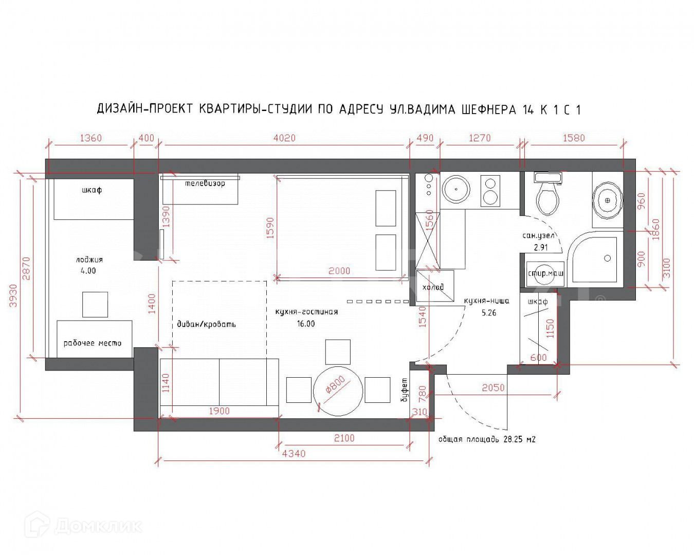 Просторная студия 28,3 кв. м;