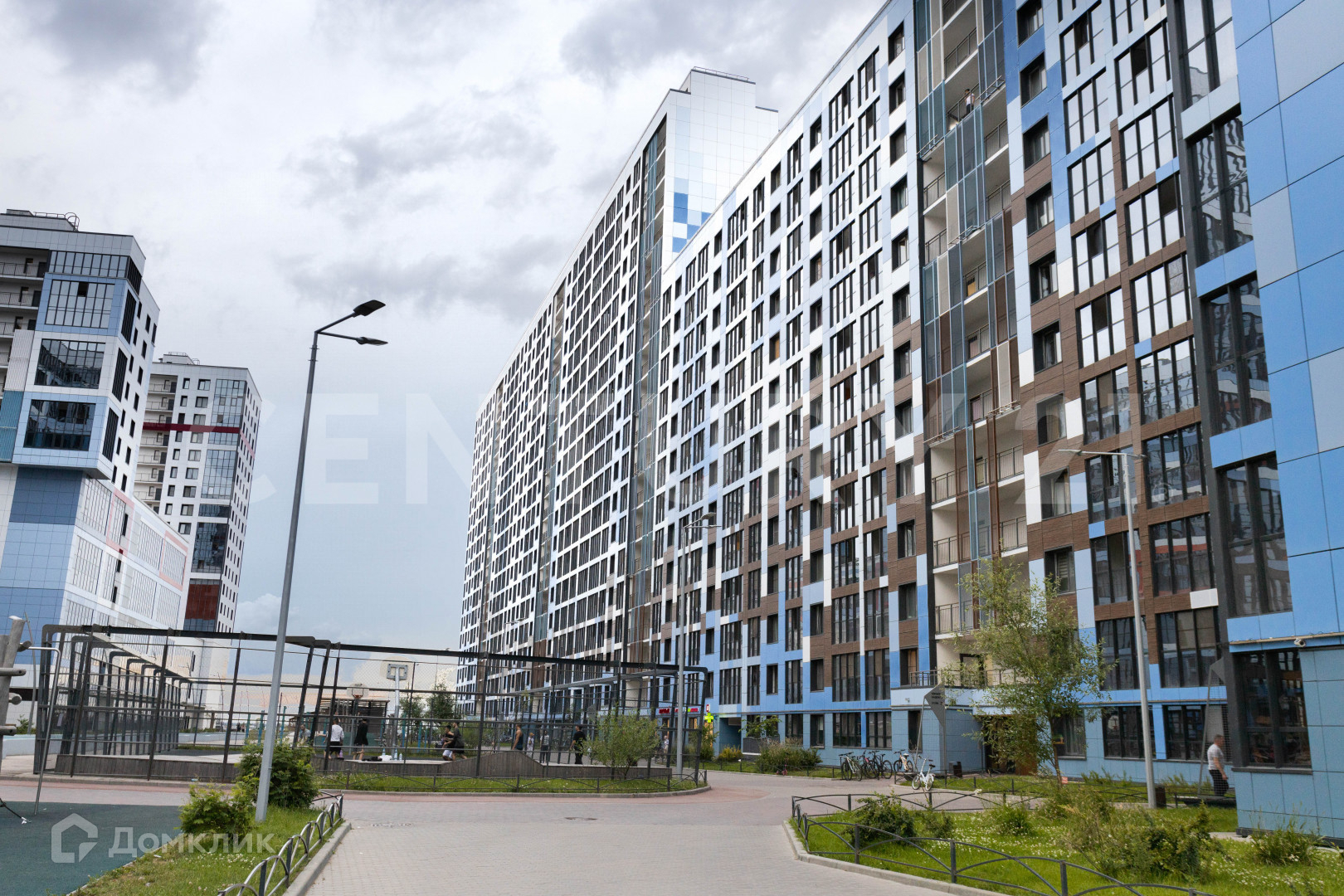 Закрытая территория, благодаря архитектурной форме полностью приватное пространство, во дворе качественные безопасные детские площадки выполненные из натуральных природных материалов спокойных оттенков;