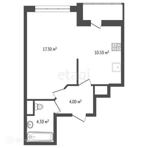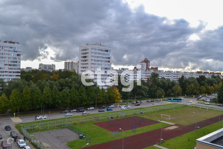 Квартира с комнатой 17.3кв.м и кухней 10.5кв.м. Из кухни - выход на застекленную лоджию. Окна квартиры выходят на Поэтический бульвар и школу, на юго-запад. Санузел совмещенный. Квартира передается с предчистовой отделкой. В холлах предусмотрены колясочные. На первом этаже корпуса предусмотрены коммерческие помещения (магазины, аптеки, булочные).