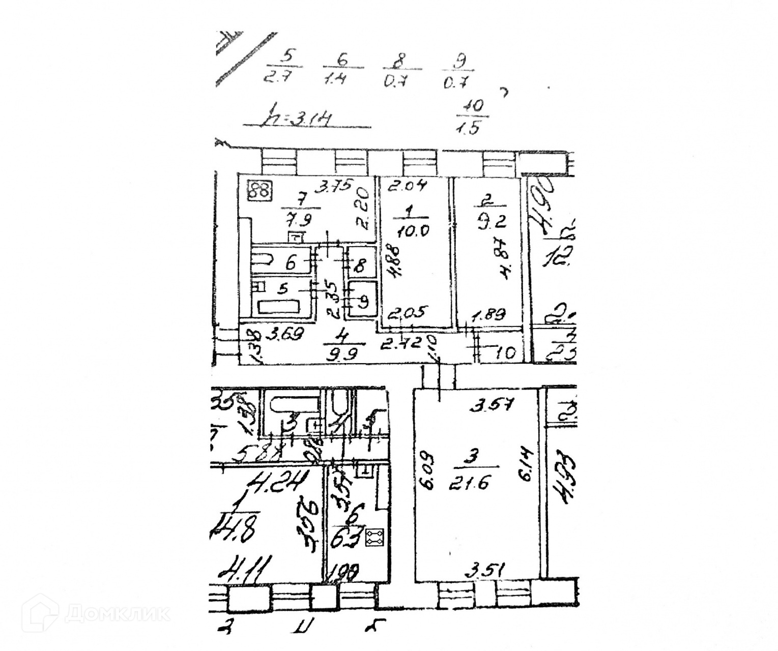 Высота потолков 3.14 м