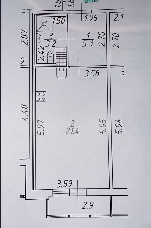 Жилая площадь 21.4 м2