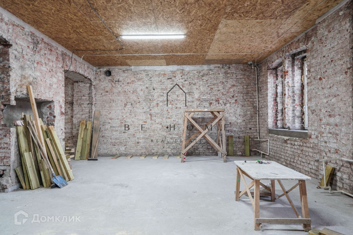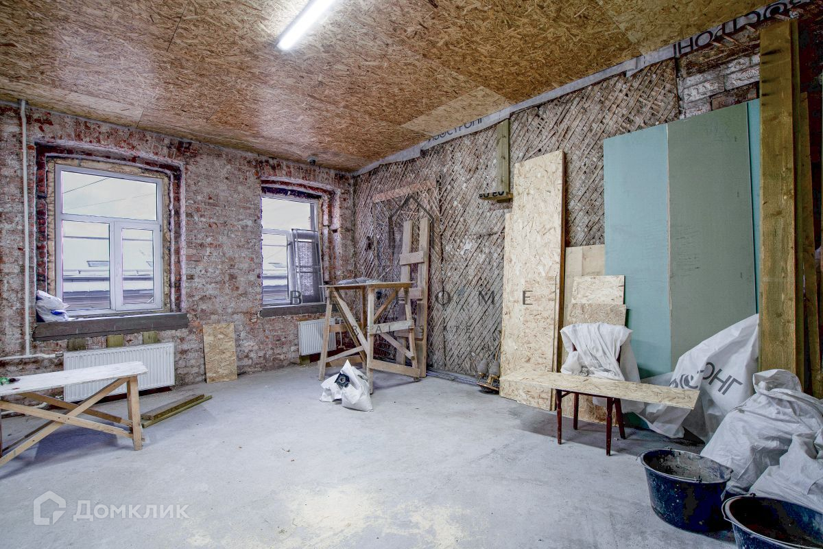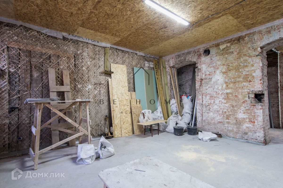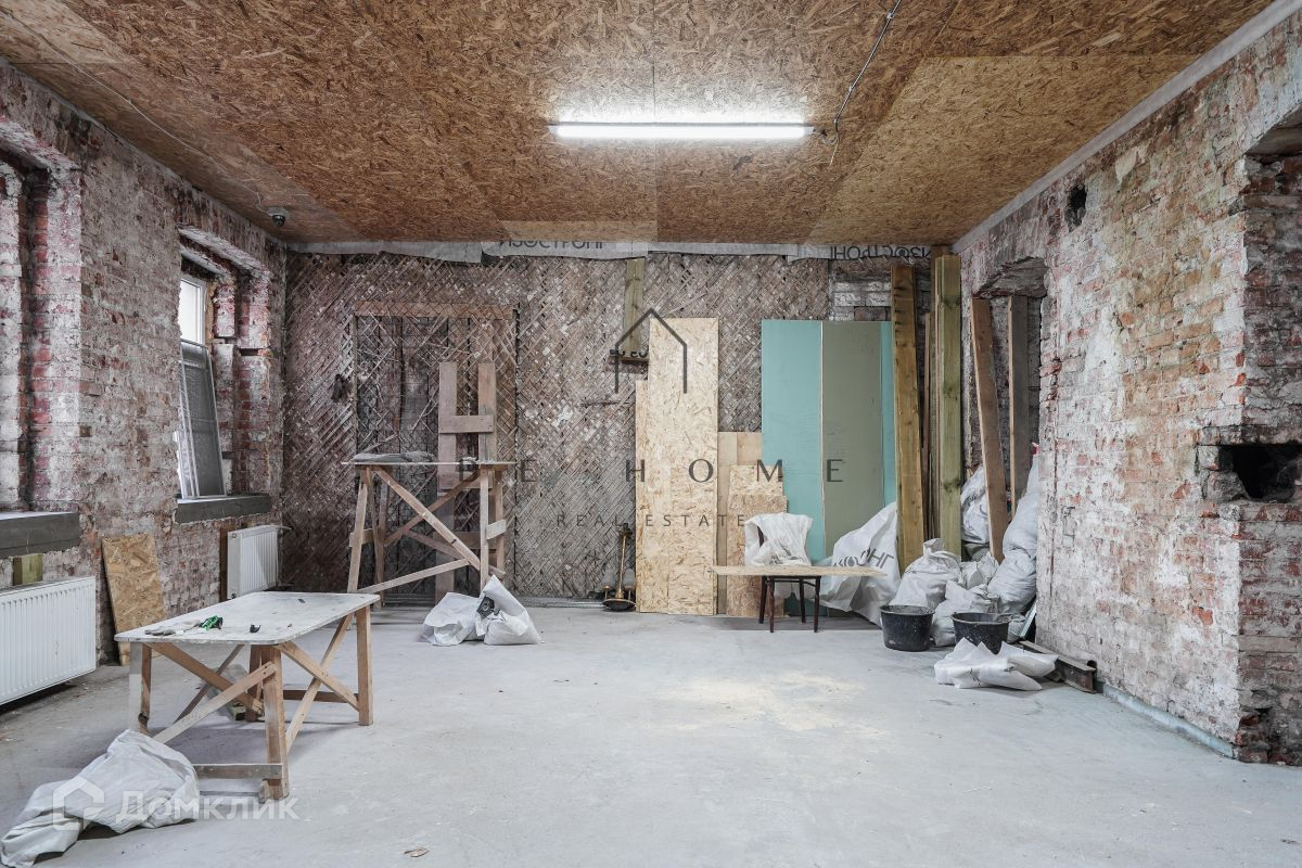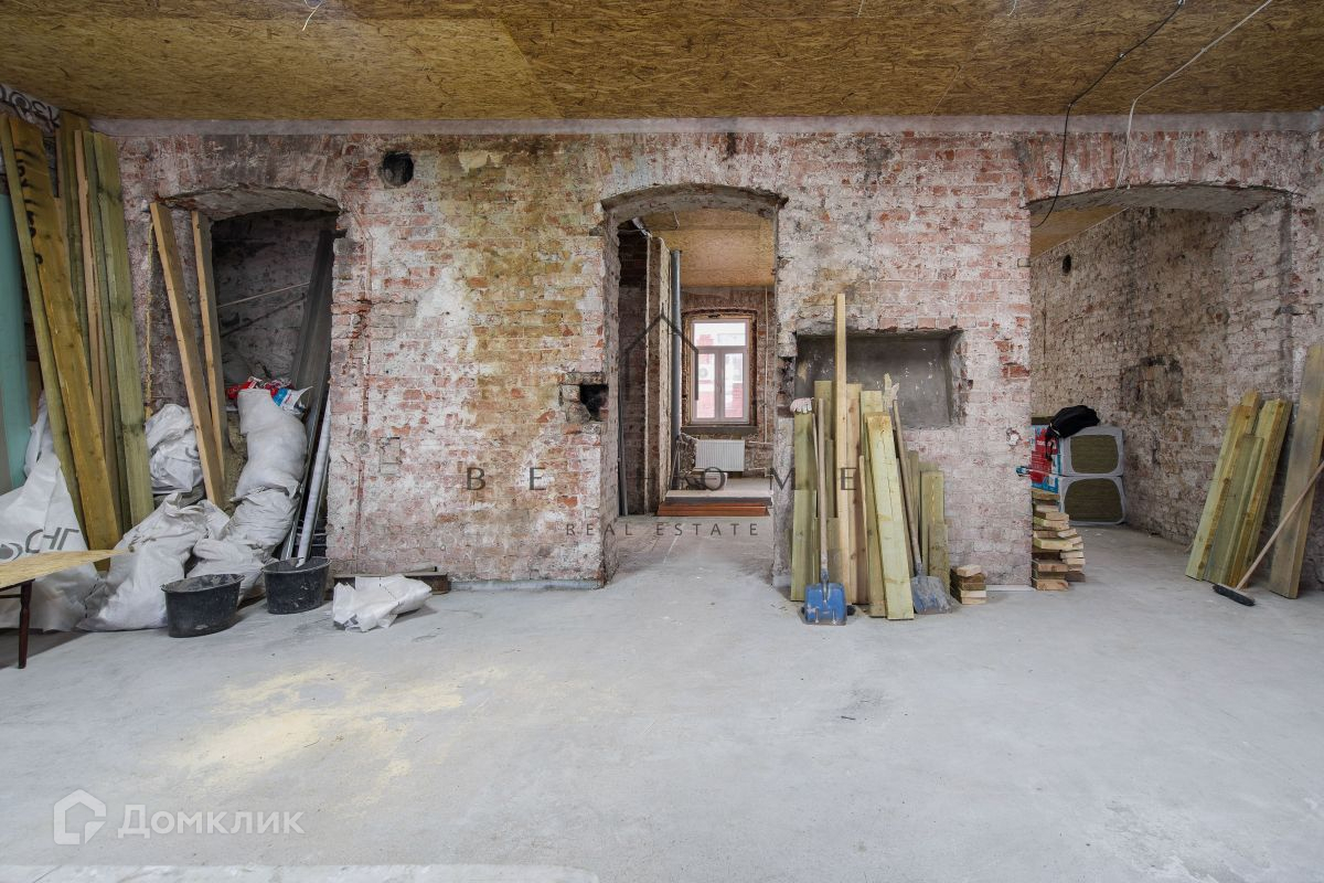 Полностью снесены все внутренние перегородки. Сделан дополнительный проем в несущей стене. Высокие потолки 3,5 метра.