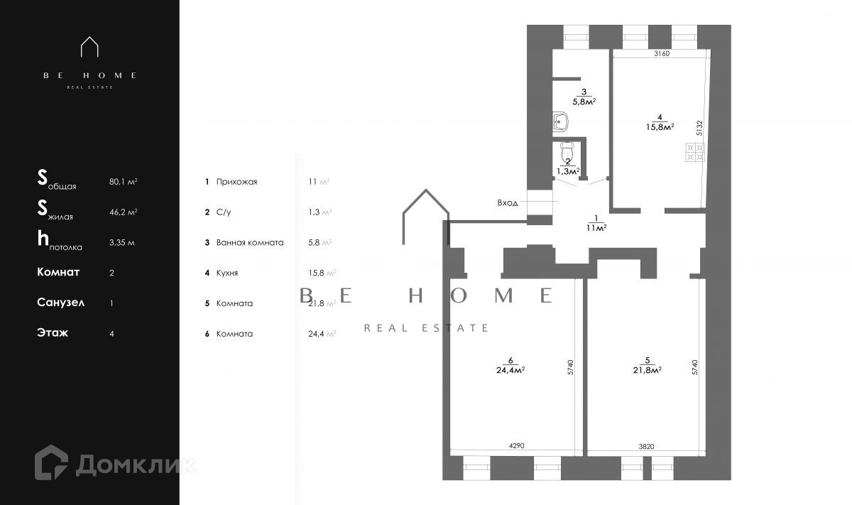 Общая площадь 80.1 м2