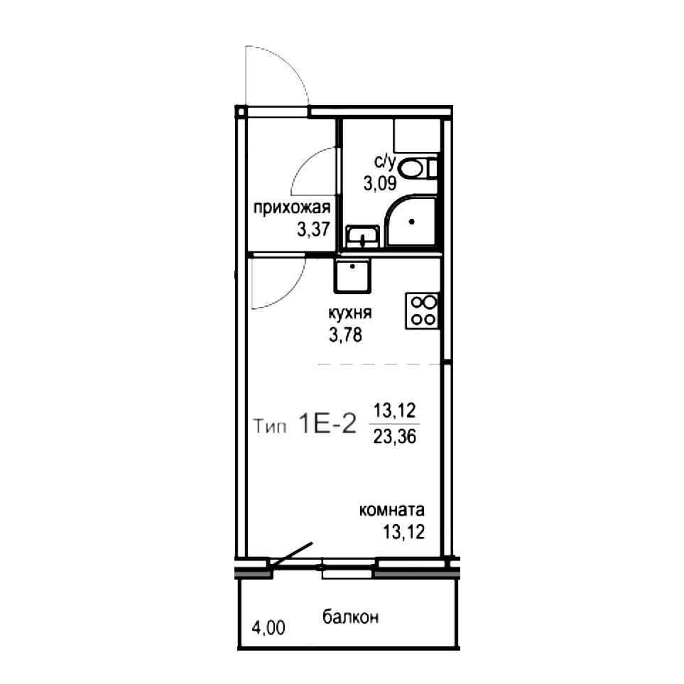 Балкон, лоджия 1 балкон