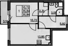 Общая площадь 35.84 м2