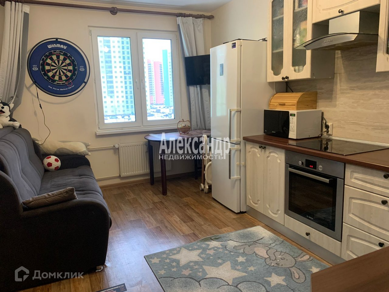 Очень теплая и  светлая квартира Комната большая, правильной формы.  Выполнен качественный ремонт.   На кухне спокойно помещается диван и ее можно использовать как вторую комнату.