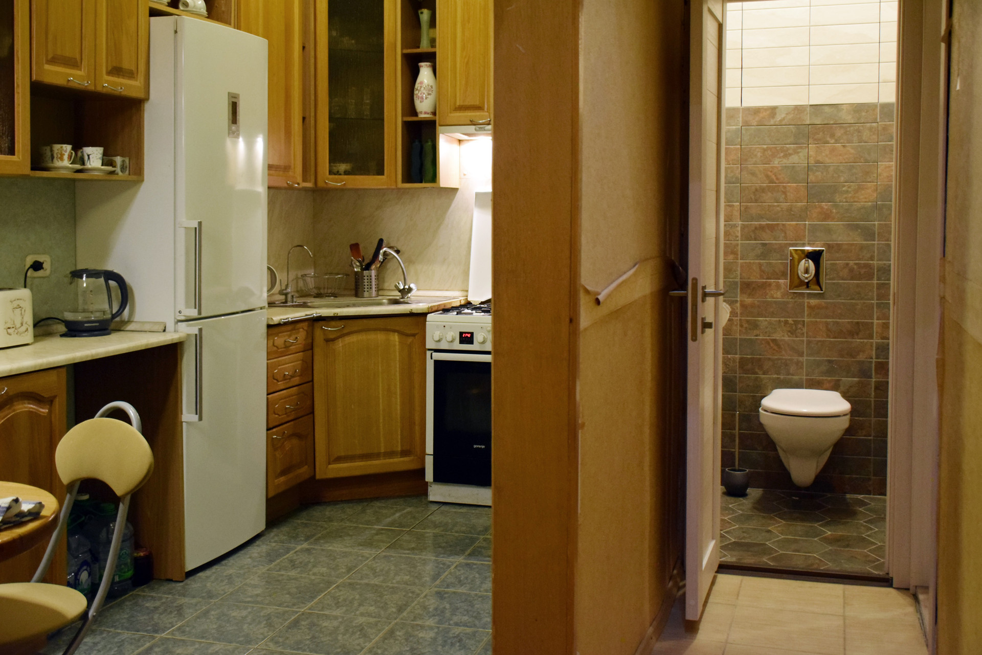 Высокие потолки 3.51 м. Раздельный санузел в кафеле, душевая, оригинальная раковина. Центральная горячая вода – никаких газовых колонок. Свежий ремонт в ванной и туалете. В квартире был капремонт с заменой всех коммуникаций.