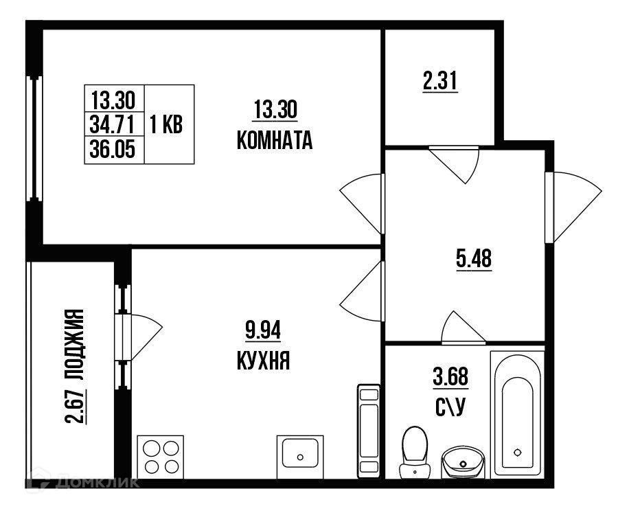 Общая площадь 36.05 м2