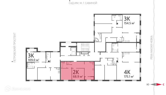 2-комнатная квартира, 69.4 м2, этаж 7 / 9, на продажу в Санкт-Петербурге, Петровский проспект, 9