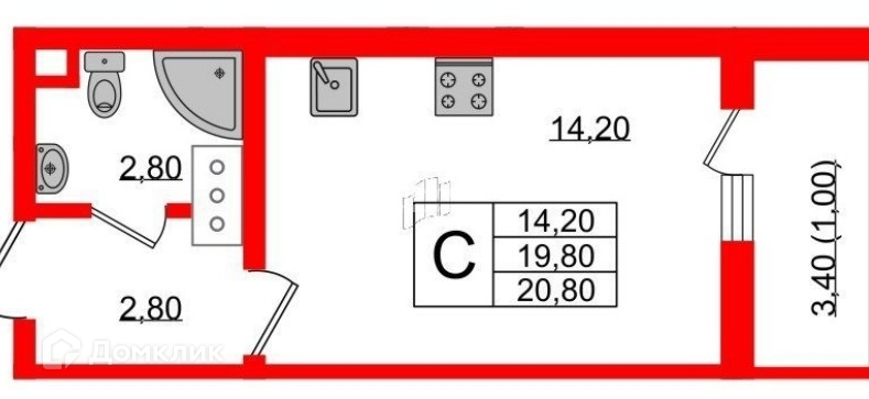 Общая площадь 20.8 м2