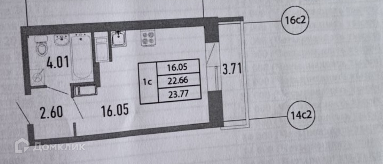 Квартира студия, 23 м2, этаж 16 / 22, на продажу в Санкт-Петербурге, Полевая Сабировская улица, 45к1