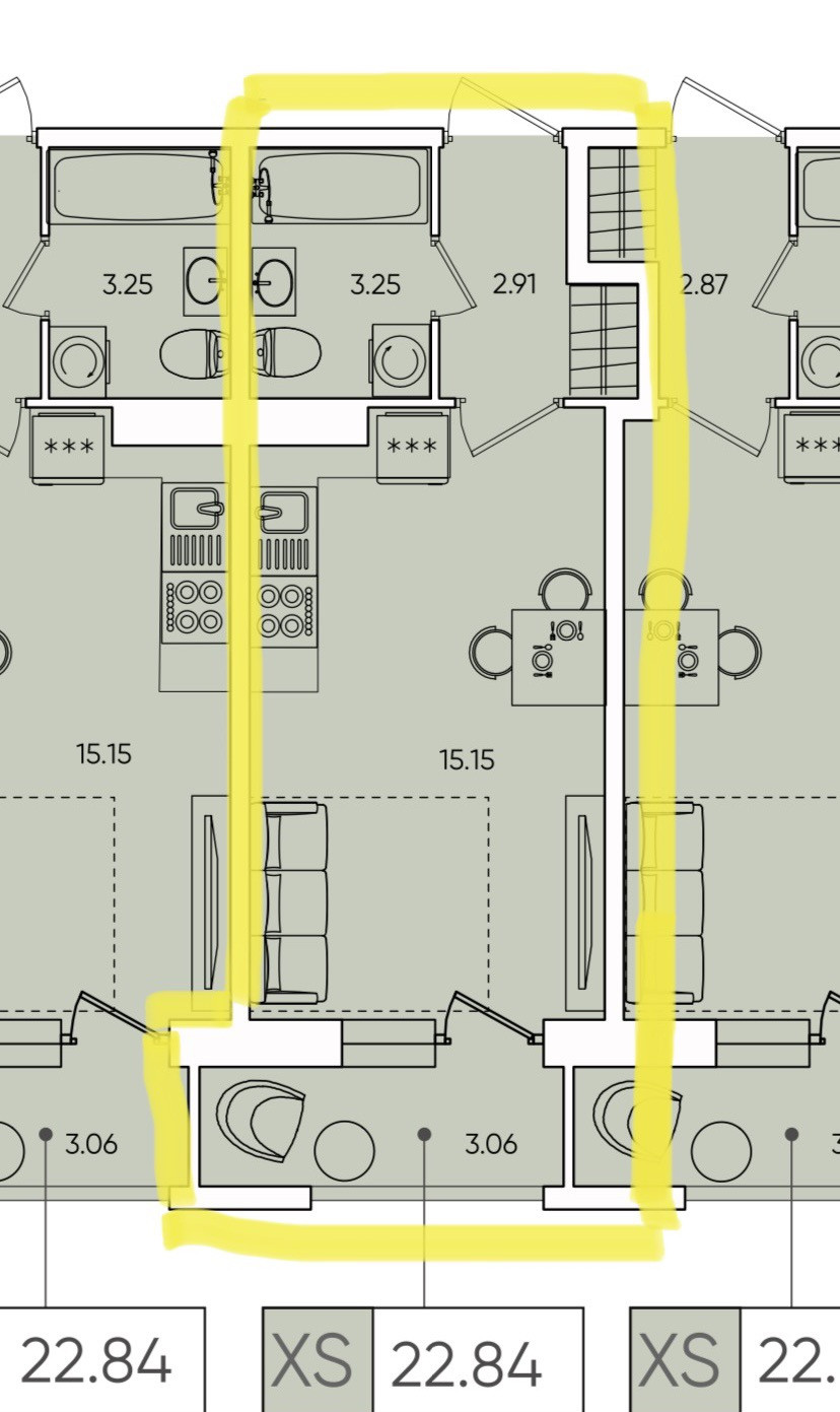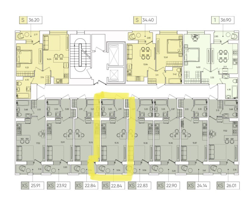 Общая площадь 22.84 м2