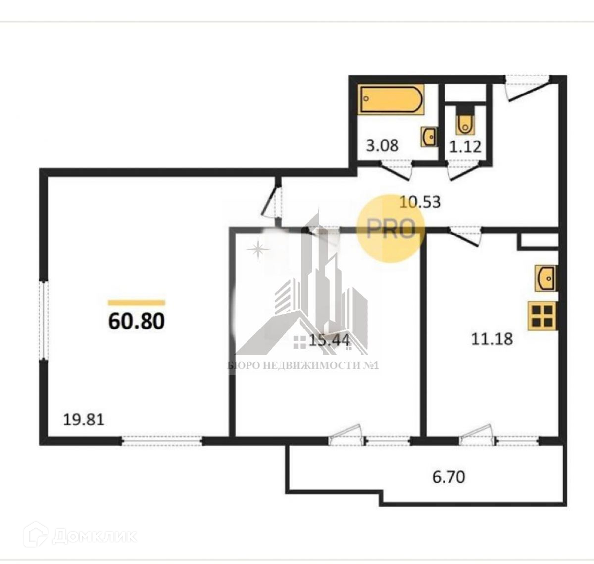 Общая площадь 61 м2