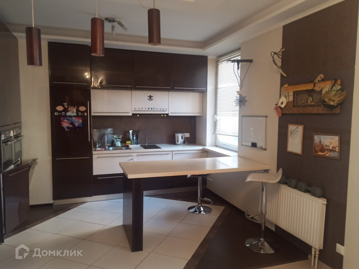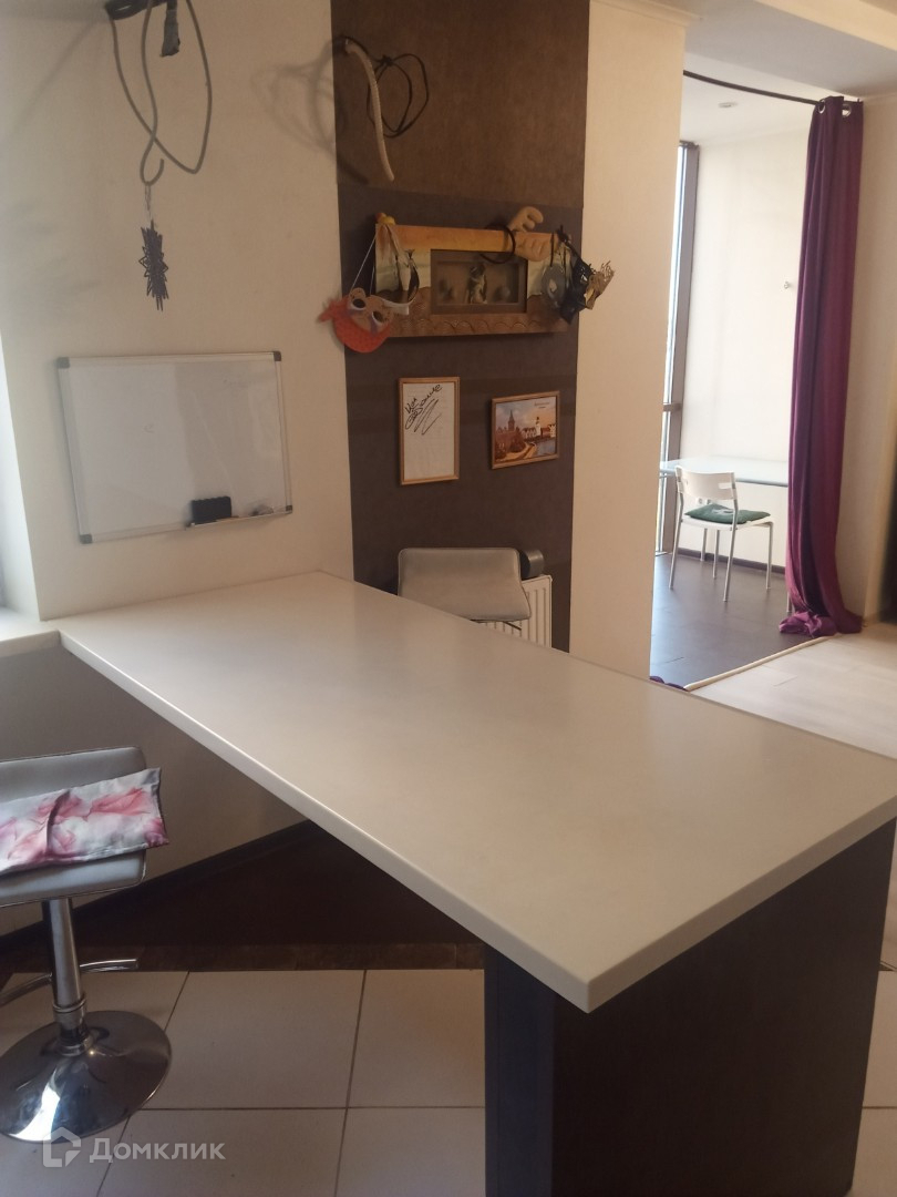 - Барная стойка отделяет кухонную зону от комнаты.