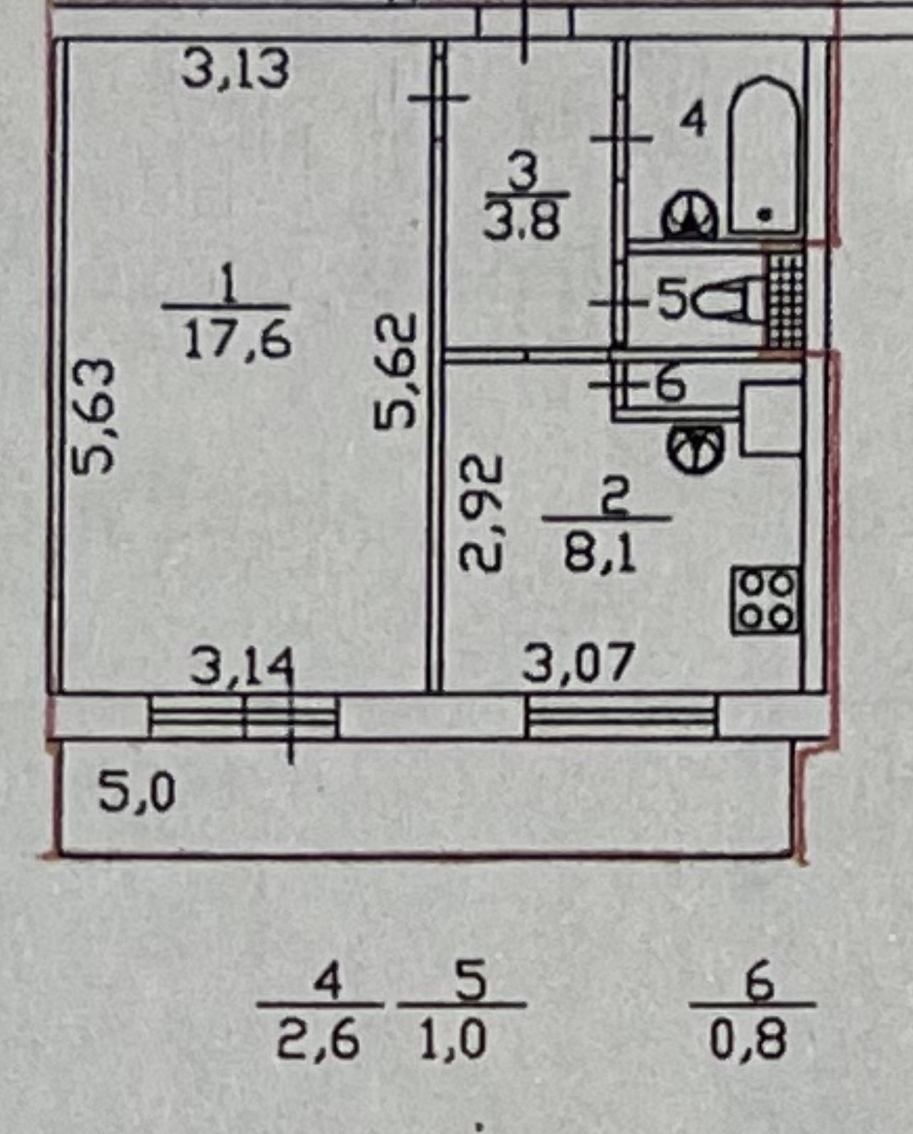 Жилая площадь 17.6 м2