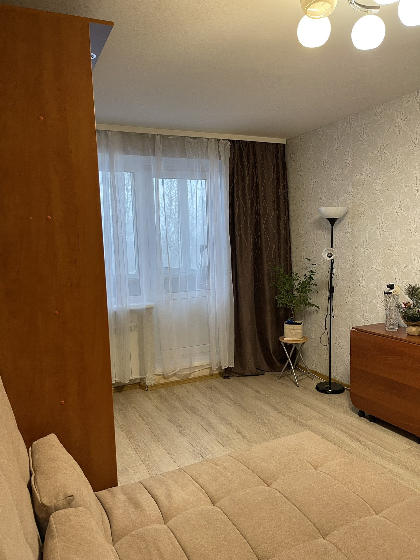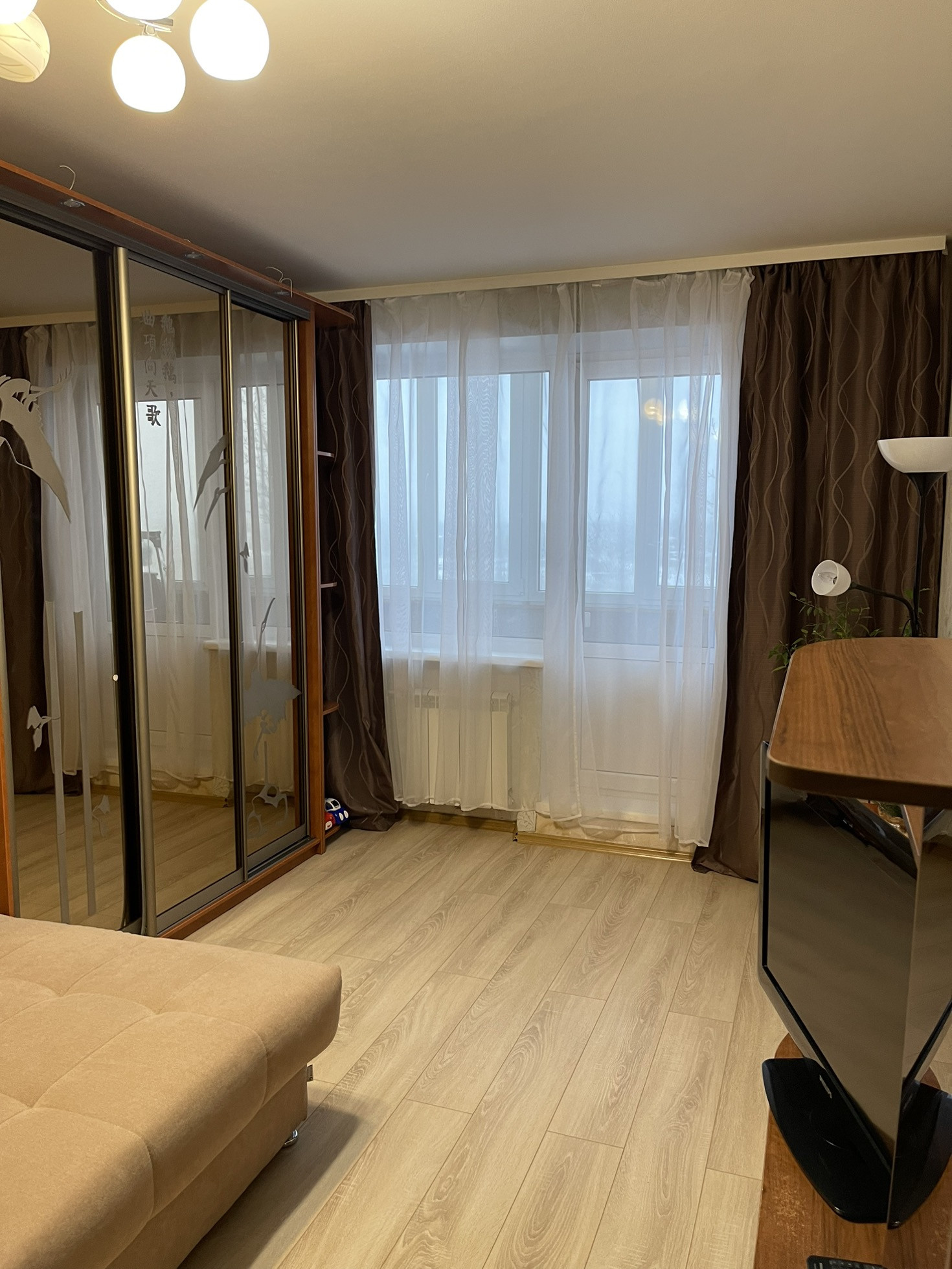 Квартира с хорошим ремонтом, 1987 года постройки, лоджия 5 м, коридор 3,8м, санузел раздельный, потолки 2,6м. Заменены трубы и батареи. Стеклопакеты установлены и на лоджии. Натяжной потолок. Остаётся новая кухонная мебель с техникой. Без обременений и залогов.