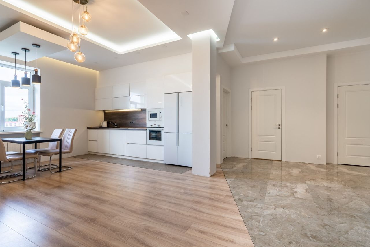 9. Большая кухня-гостиная-столовая.