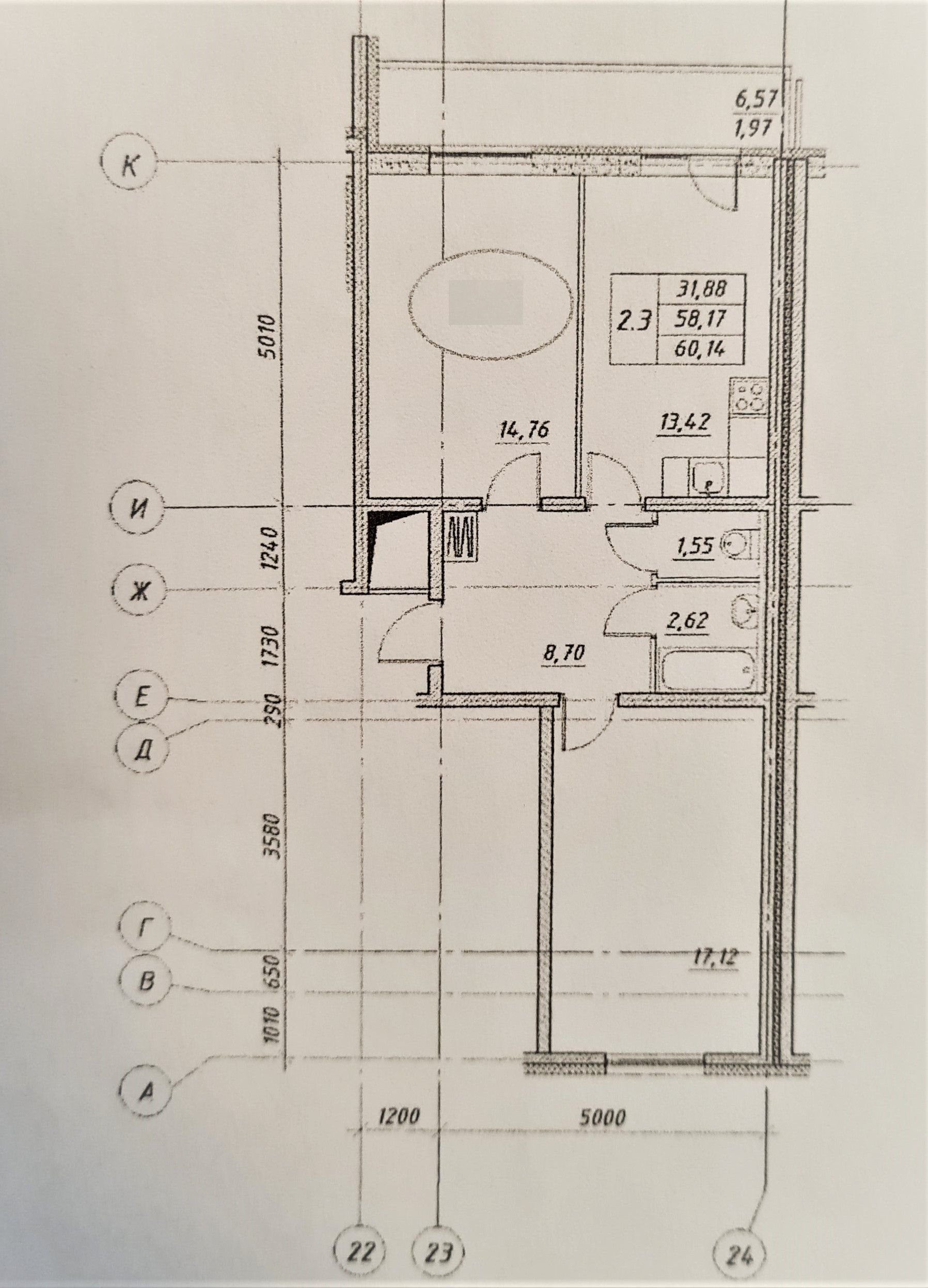 Общая площадь 60.14 м2