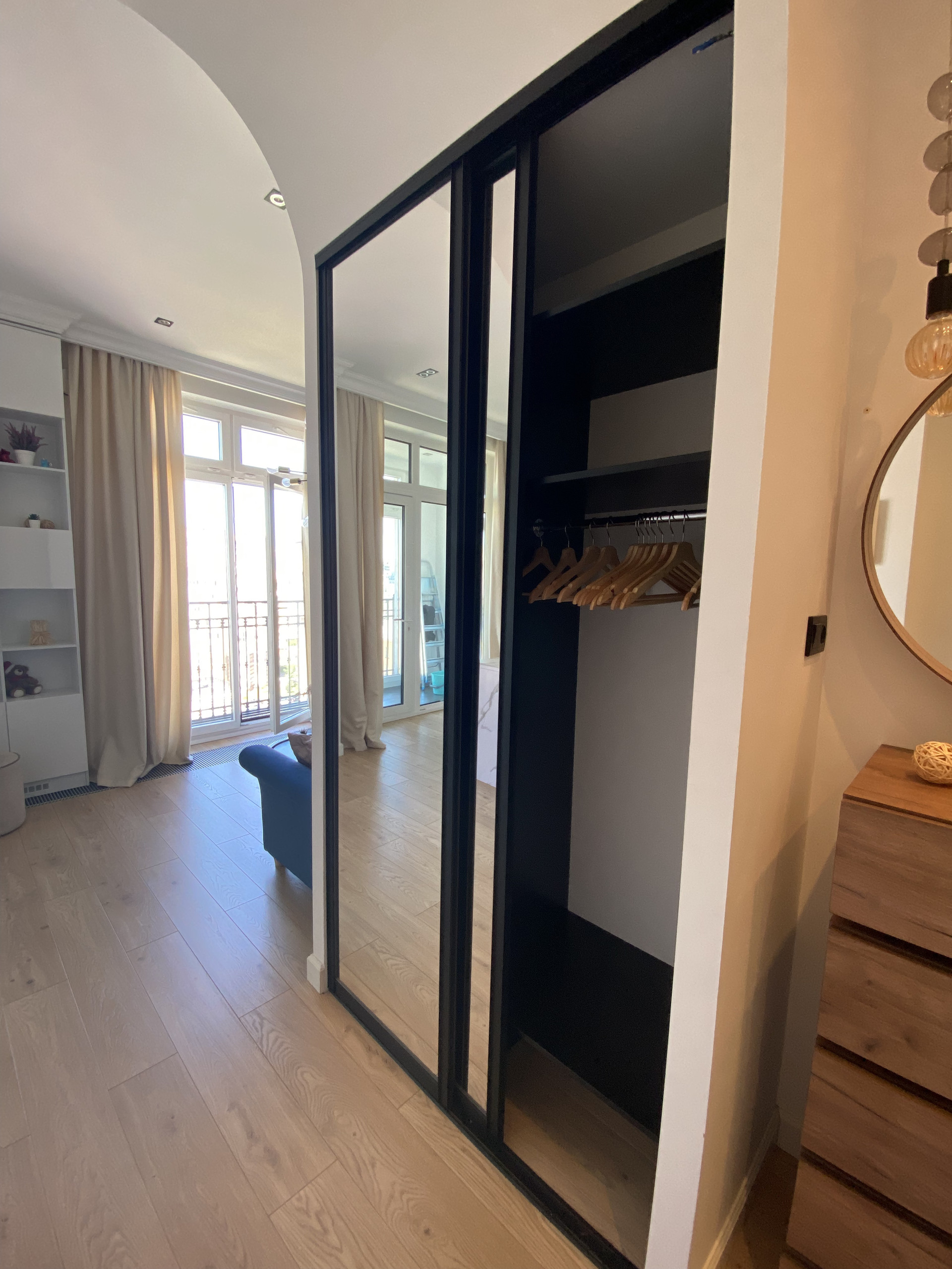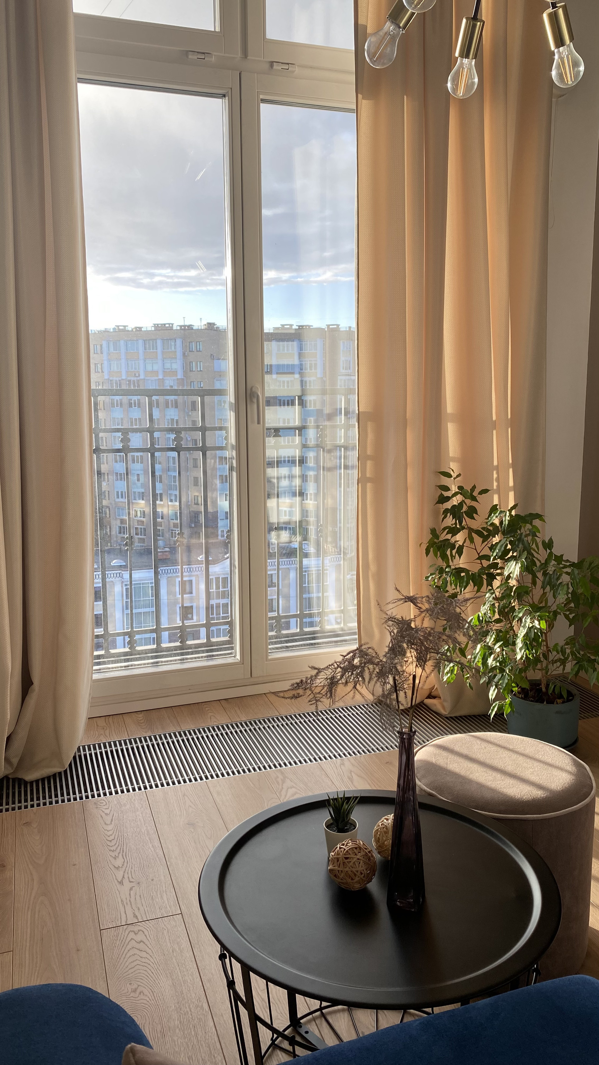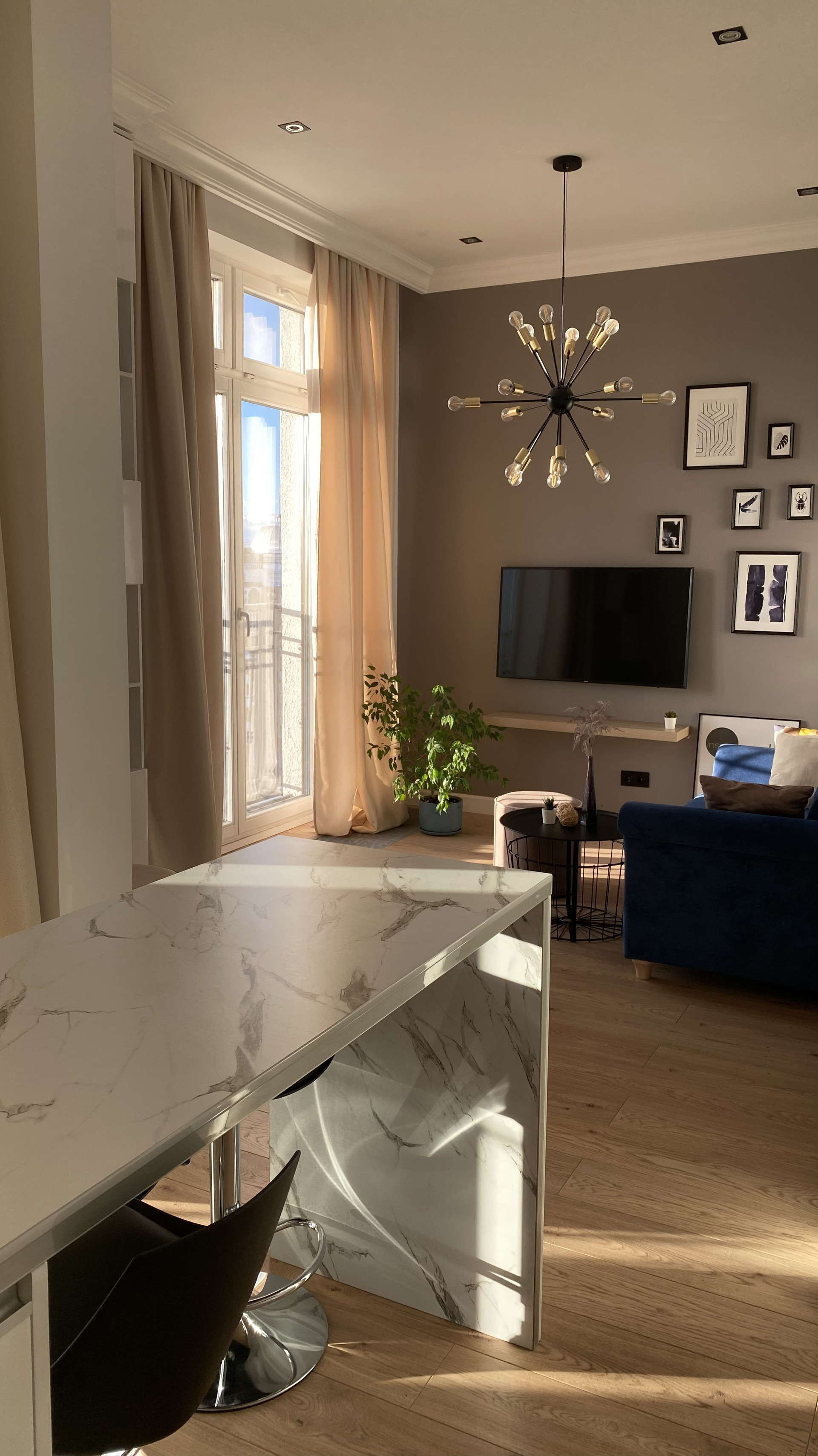 Панорамные окна в пол делают квартиру очень светлой и уютной. В квартире выполнен качественный дизайнерский ремонт.