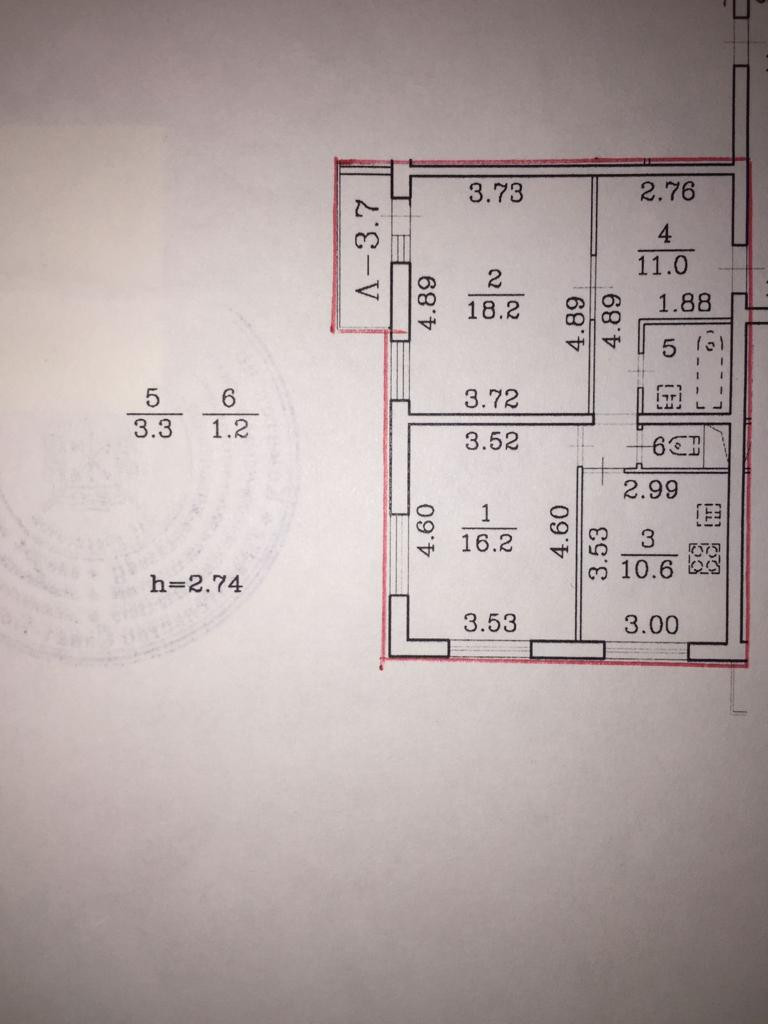 Балкон, лоджия 1 балкон