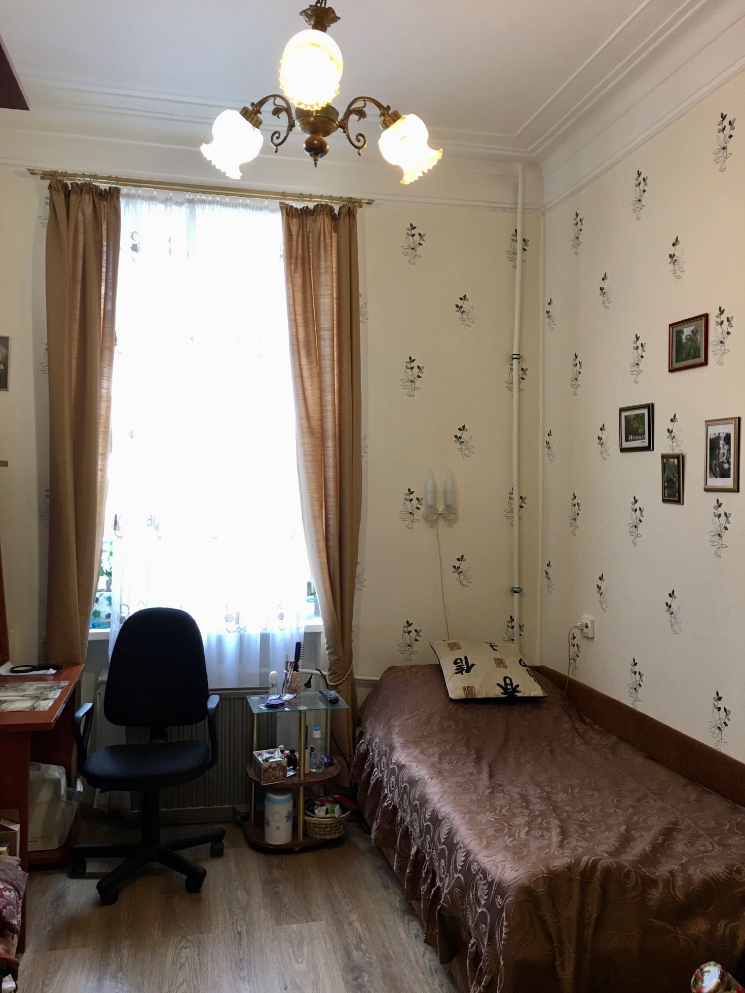 В продаже отличная ухоженная квартира в тёплом кирпичном доме.Дом расположен недалеко от  Вяземского сада,во дворе дома много зелени,двор закрыт.Установлен шлагбаум,есть парковочное место.Состояние квартиры можно заехать и жить.В большой комнате гостиной красивое окно эркер.На потолках комнат лепнина в отличном состоянии.Окна стеклопакеты,санузел и ванная  -плитка.В подарок Покупателю остаётся современная кухонная мебель,встроенный шкаф в прихожей.В прихожей есть две кладовки для удобного хранения вещей.Из окон кухни видно Иоанновский монастырь.Продаётся со встречной покупкой двухкомнатной квартире на юго-западе города.