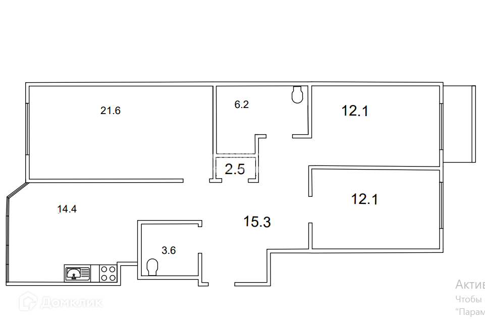 Дом расположен на левом берегу Невы. Общая площадь квартиры составляет 87.8м2, кухня 14.4м2, комнаты 21.6м2 ,12.1м2 и 12.1м2.