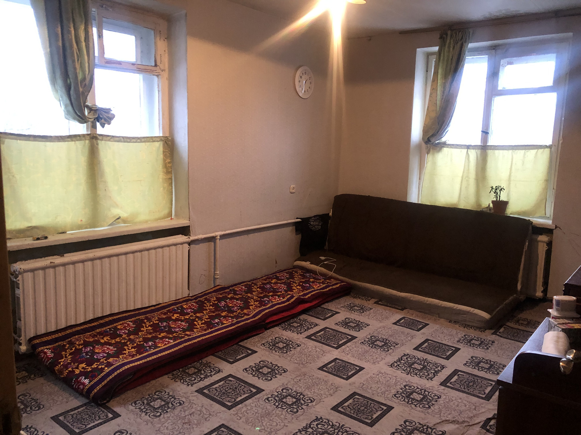 Окна выходят во двор и на улицу;