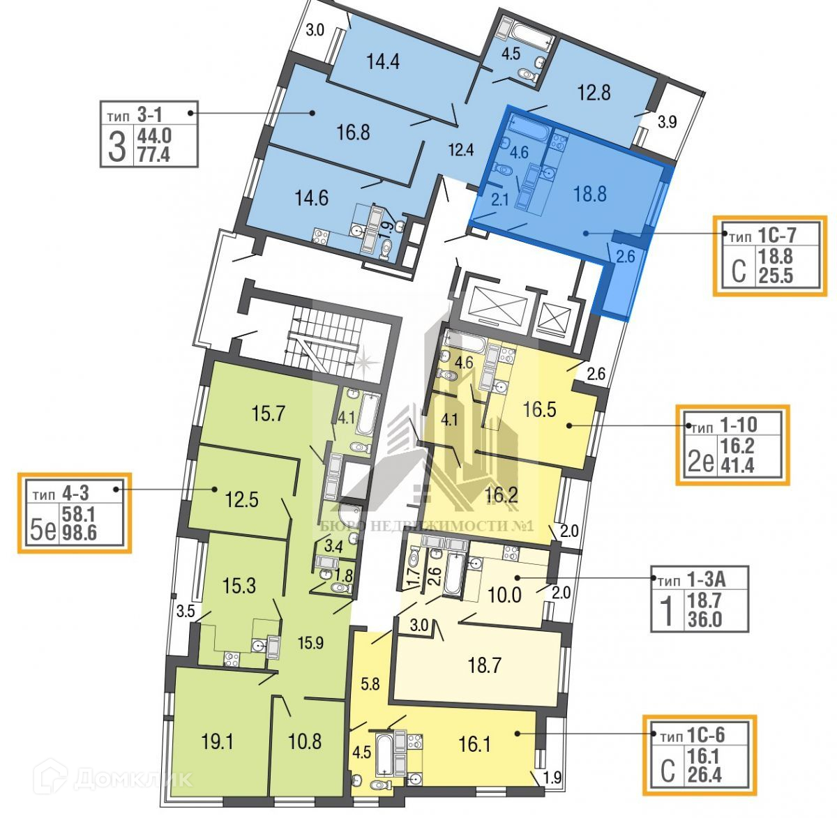 Общая площадь 25.5 м2