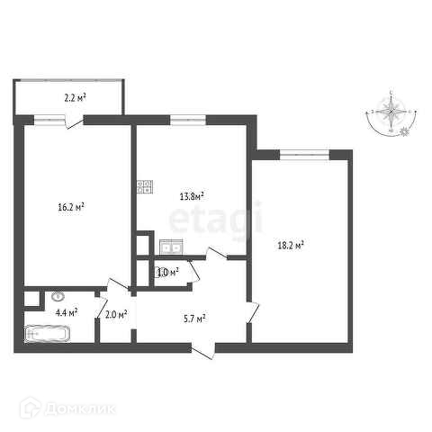 - 1 совмещенный, 1 раздельный санузел