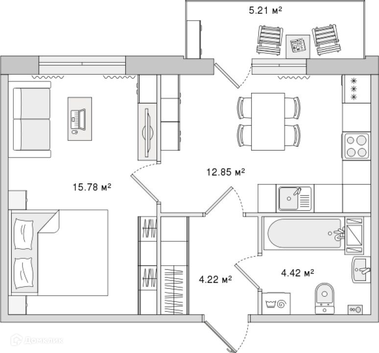 Жилая площадь 15.78 м2