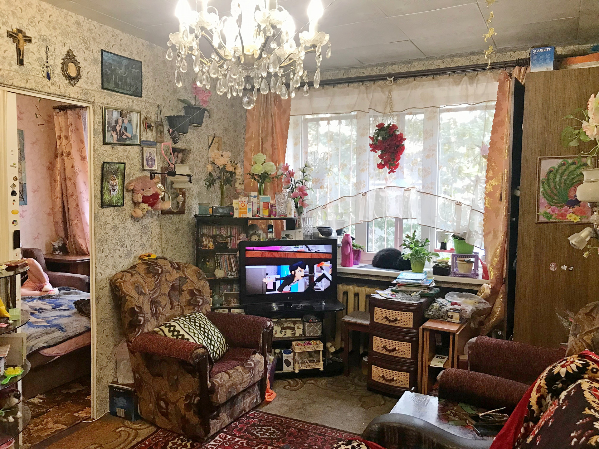 Квартира теплая, санузел раздельный, полы в хорошем состоянии, перепланировок нет, установлены стеклопакеты. При желании комнаты можно легко изолировать. На кухне газовая колонка - у вас не будет отключений горячей воды!