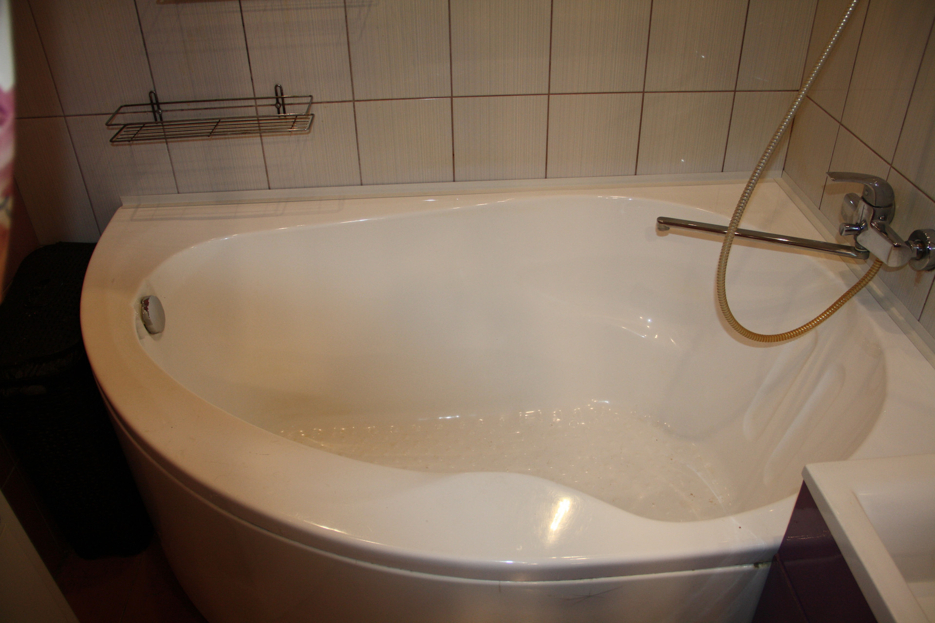 Стены и пол в ванной и туалете выложены плиткой, потолки реечные, вся сантехника заменена.
