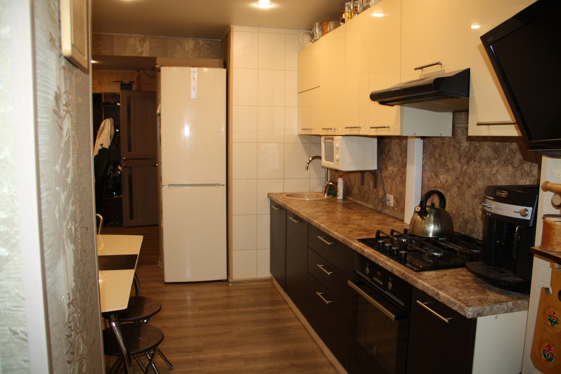 Потолки натяжные в комнатах, кухне, прихожей.