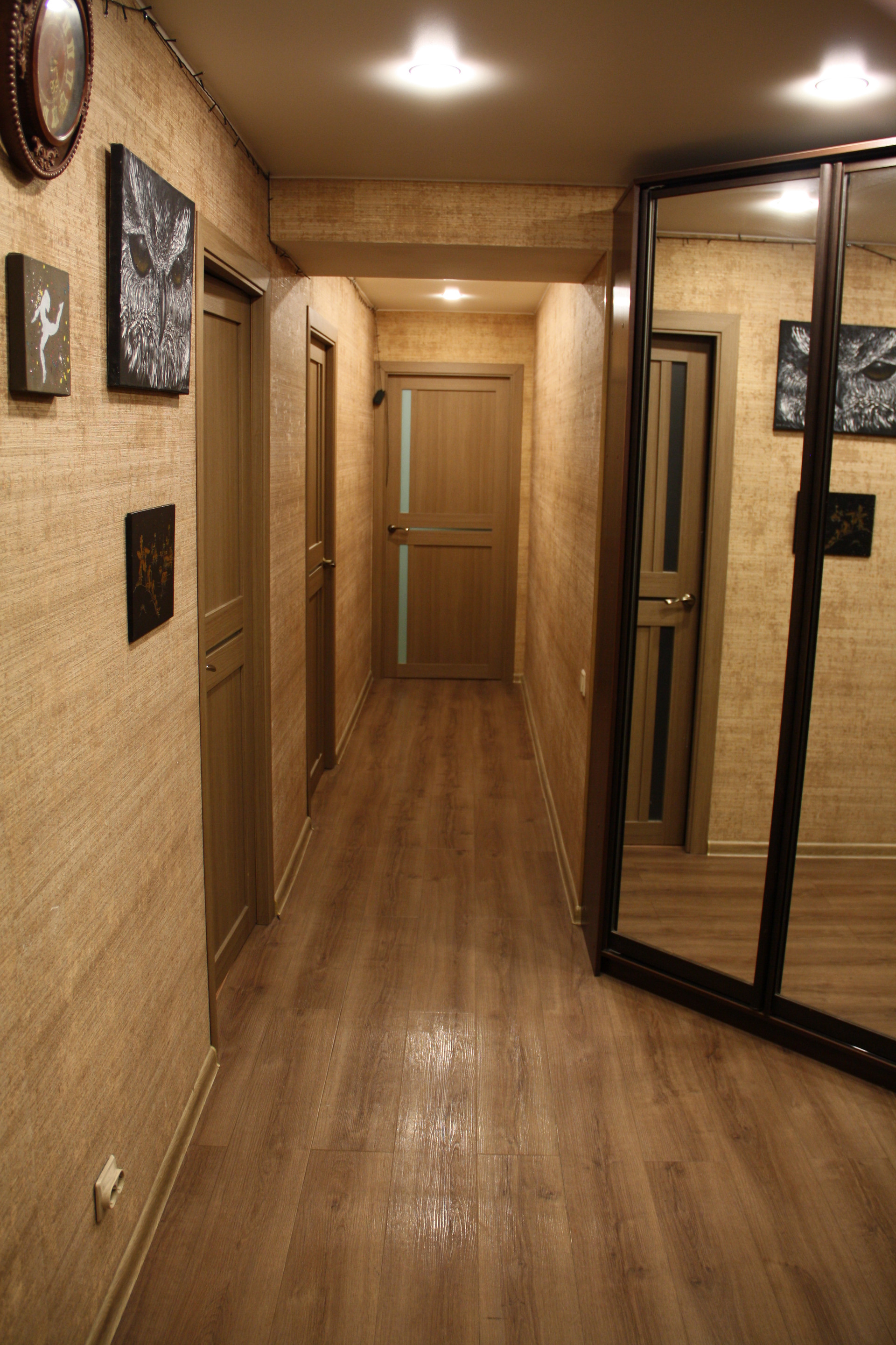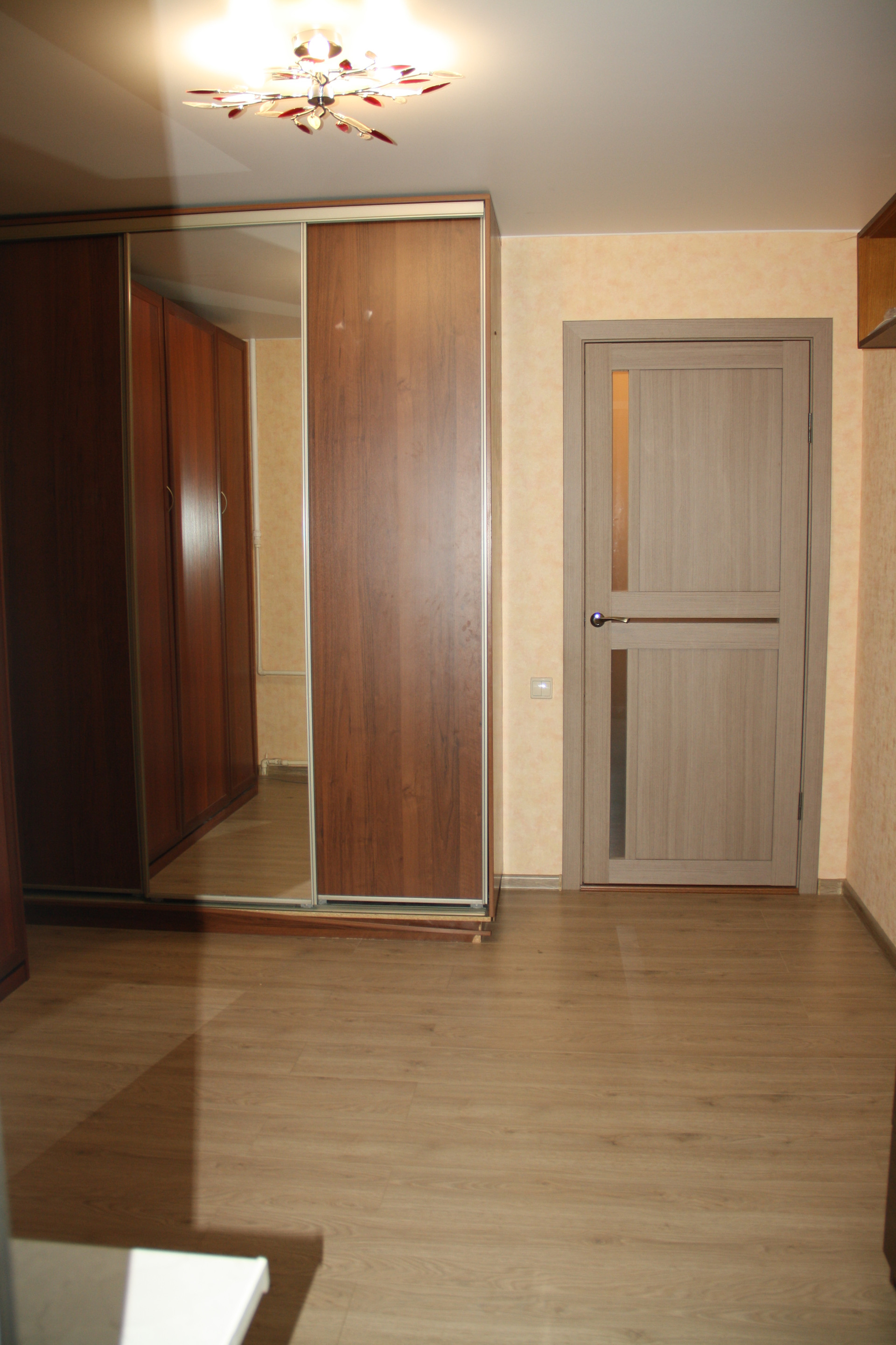 Покрытие полов в прихожей и кухне водо - износостойкий ПВХ-ламинат, в комнатах ДВП-ламинат класс стойкости 33.