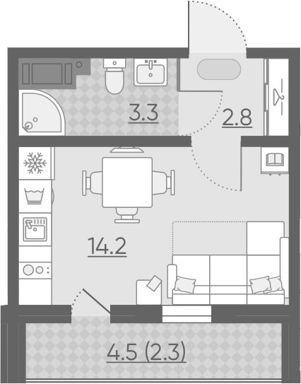 Общая площадь 27 м2