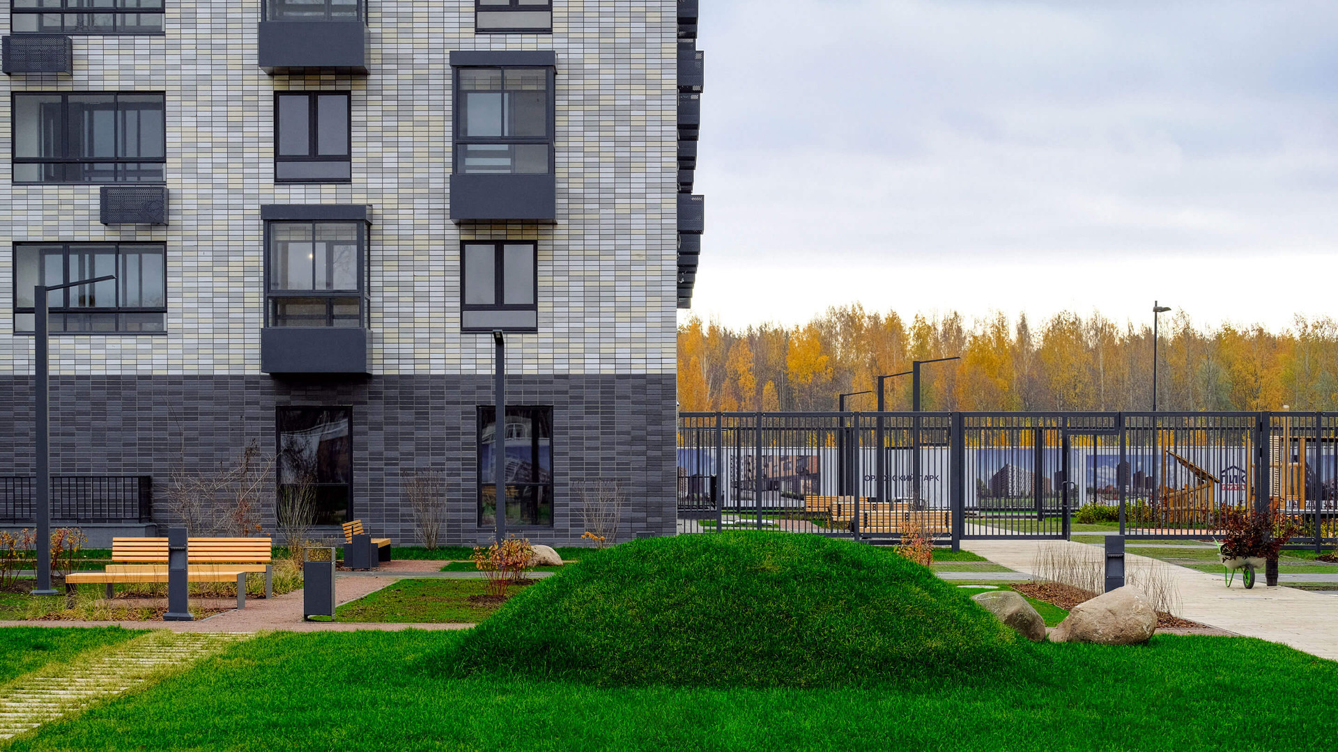 Современный комплекс, рядом с лесными массивами.