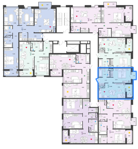 Площадь квартиры: 42.8 м2 + 4,11 м2 лоджия+балкон