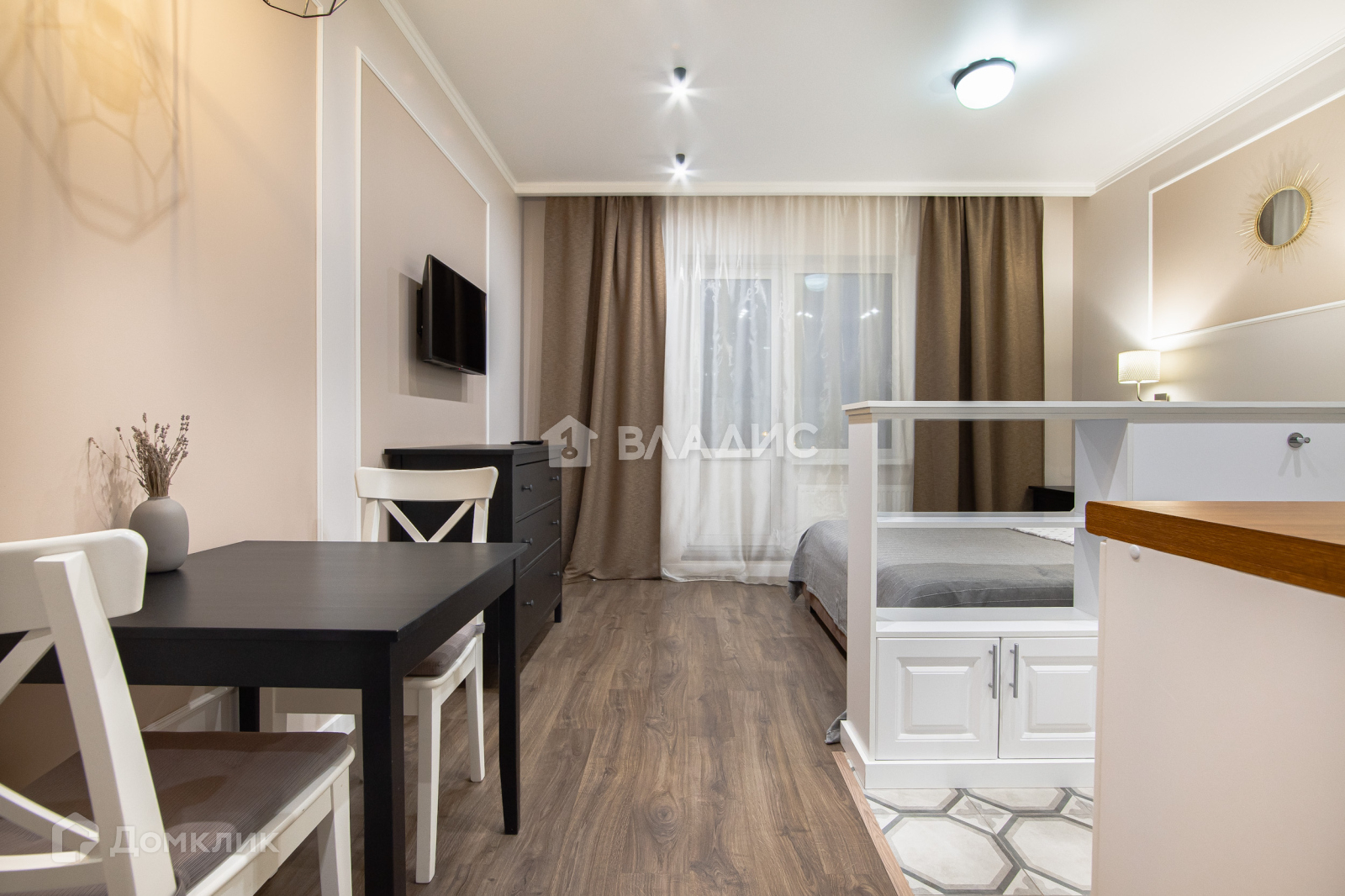 Студия находится на 4 этаже. Окна выходят в спокойный двор дома. В квартире теплый пол и застекленная теплая лоджия площадь - 4.4 кв.м. Ремонт в студии дизайнерский, использовались лучшие материалы и специалисты!