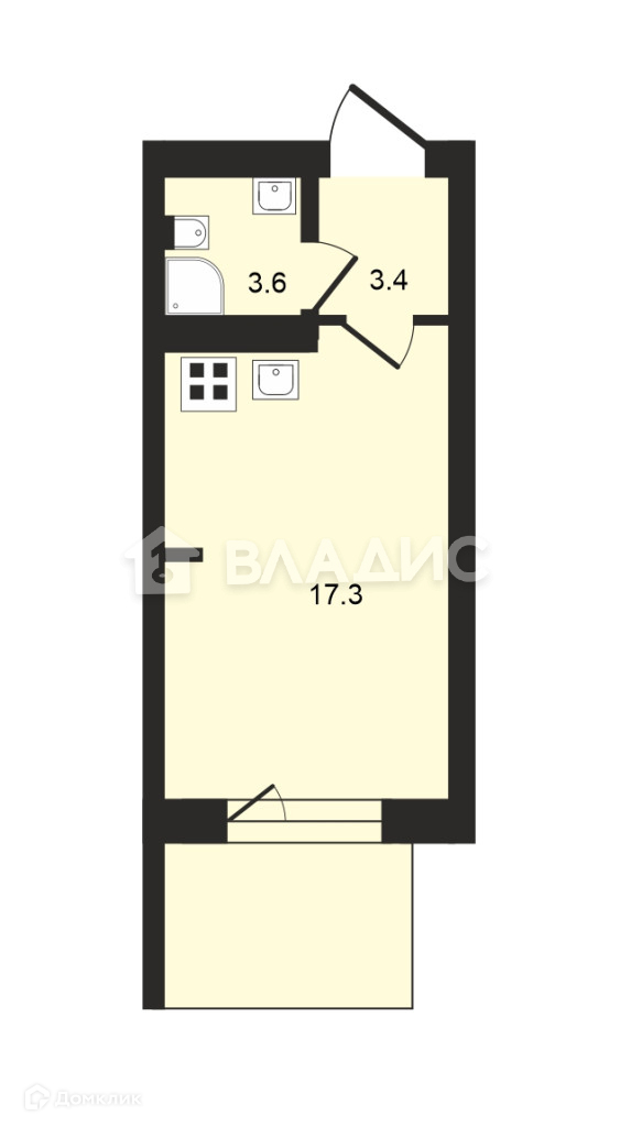Жилая площадь 17.3 м2