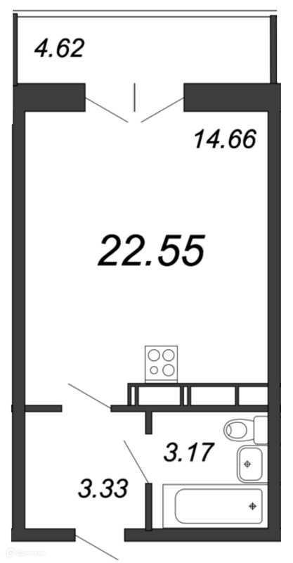 Общая площадь 22.55 м2