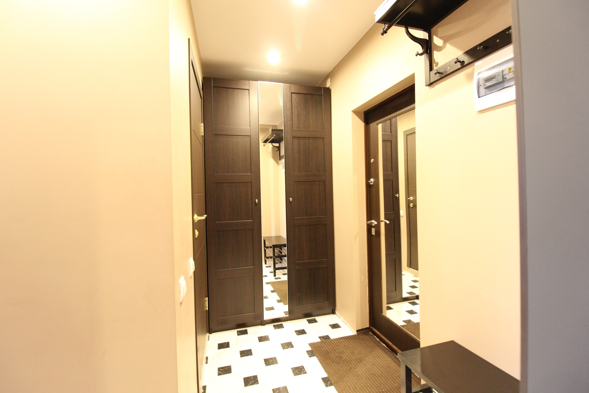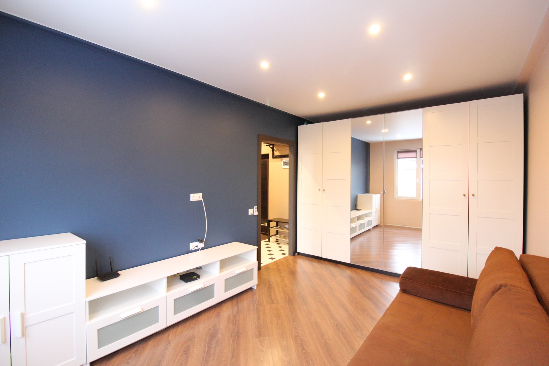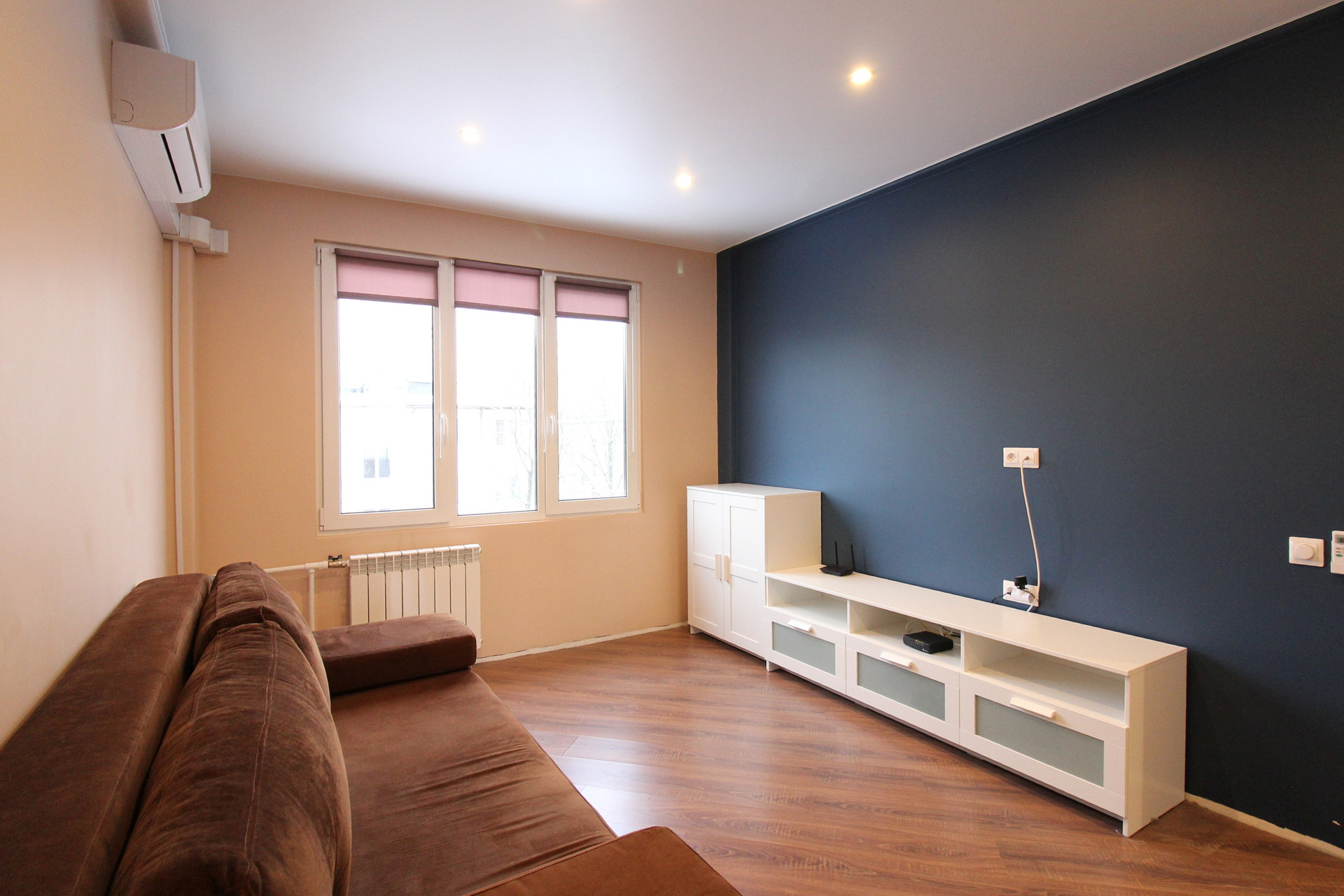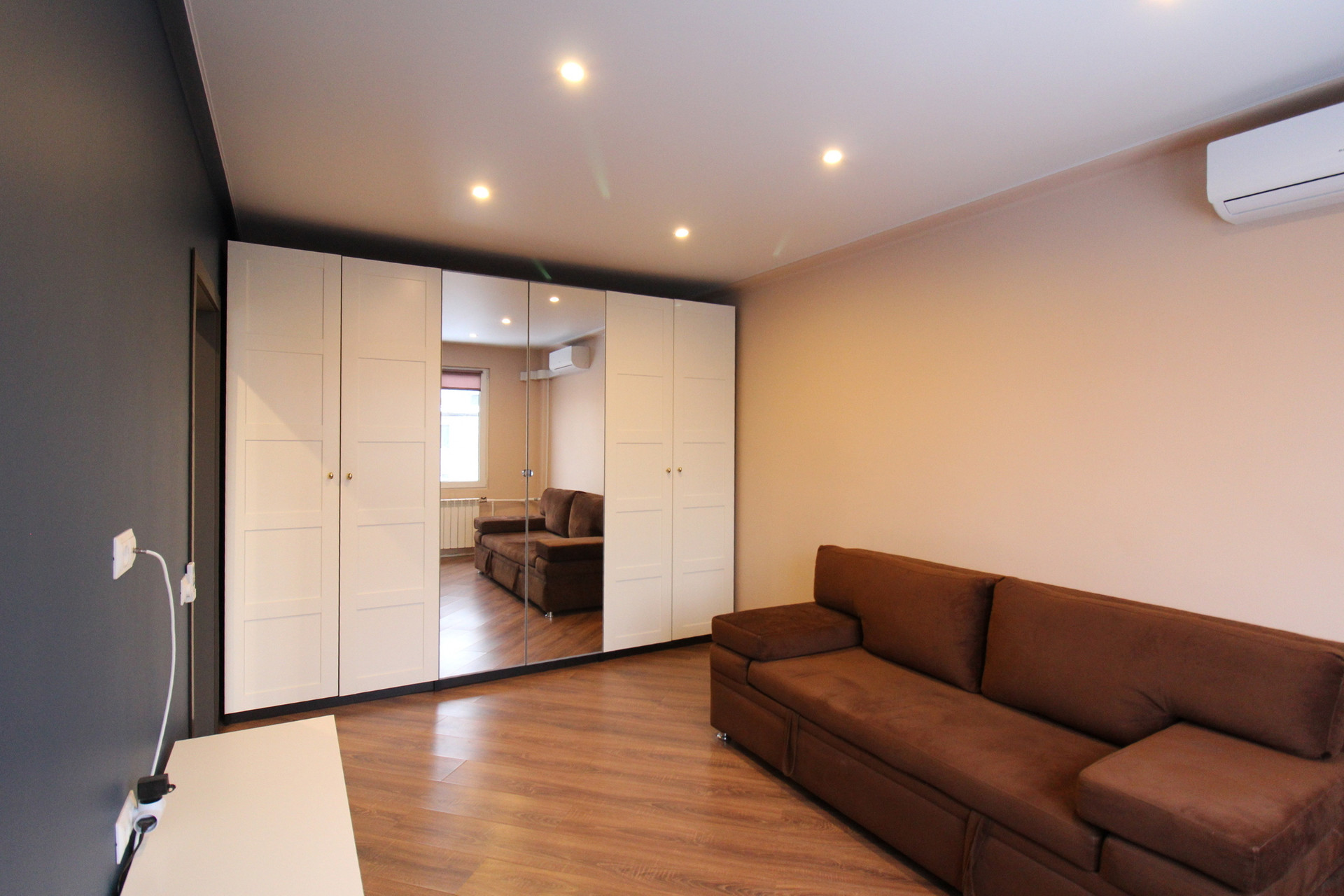 Однокомнатная квартира в отличном состоянии. Сделан качественный ремонт с выравниванием стен. Можно заезжать и жить. Кондиционер, холодильник, стиральная машина, электроплита, вытяжка. Два шкафа, диван. На полу качественный ламинат. Стеклопакеты. Металлическая дверь с хорошим замком. Натяжные потолки.