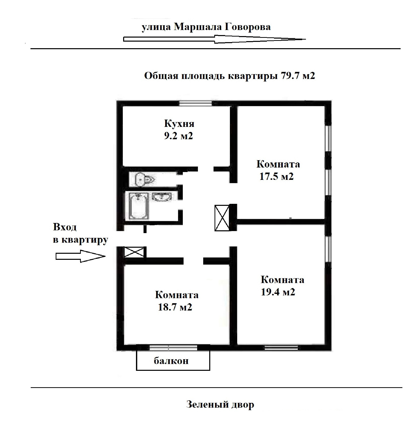 Общая площадь 79.7 м2