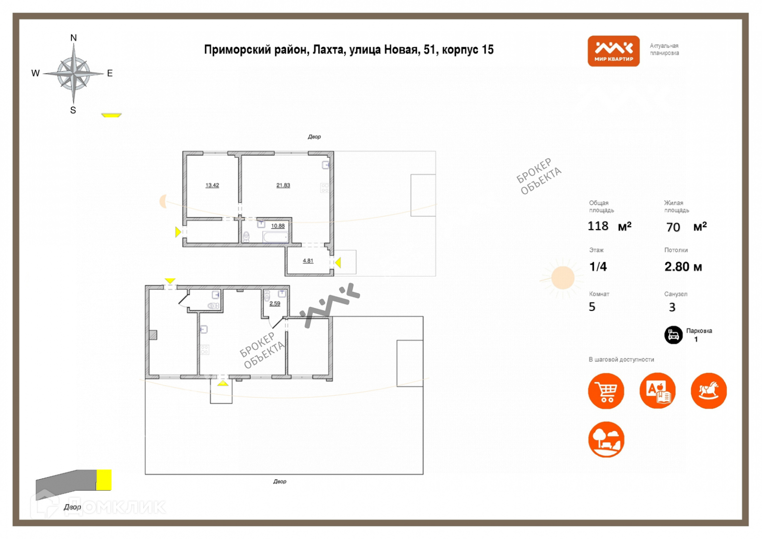 5-комнатная квартира, 117.6 м2, этаж 1 / 4, на продажу в Санкт-Петербурге, Новая улица, 51к15