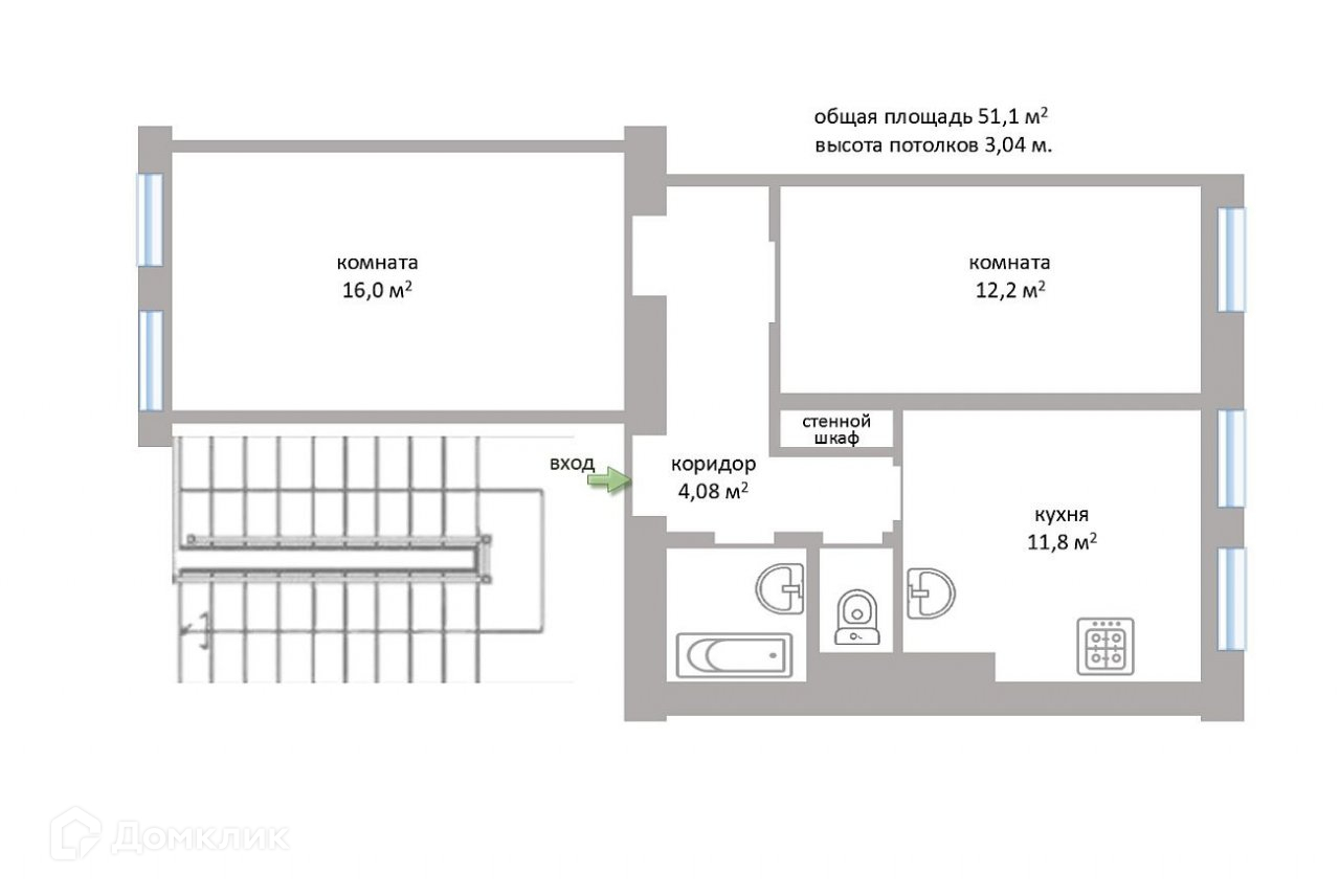 Общая площадь 51.1 м2