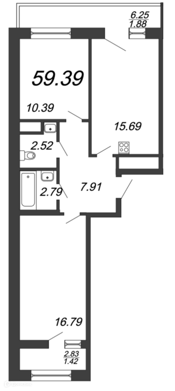 Общая площадь 59.2 м2