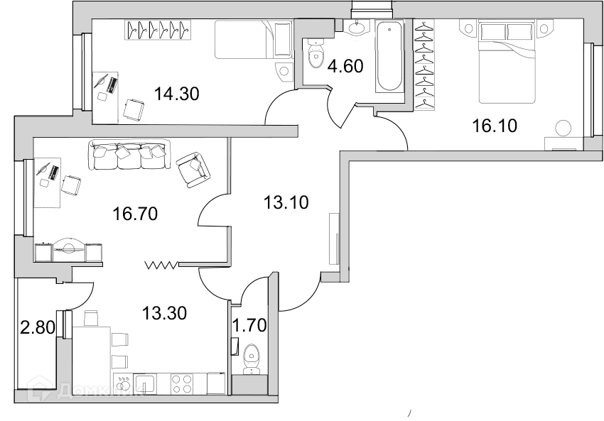 Общая площадь 82.6 м2