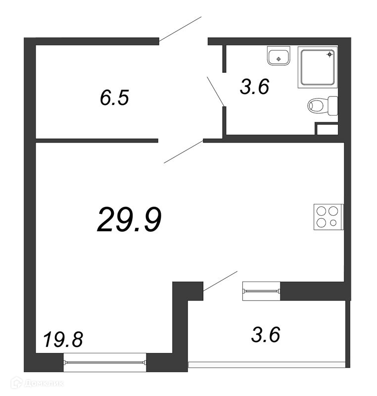 Общая площадь 30.3 м2