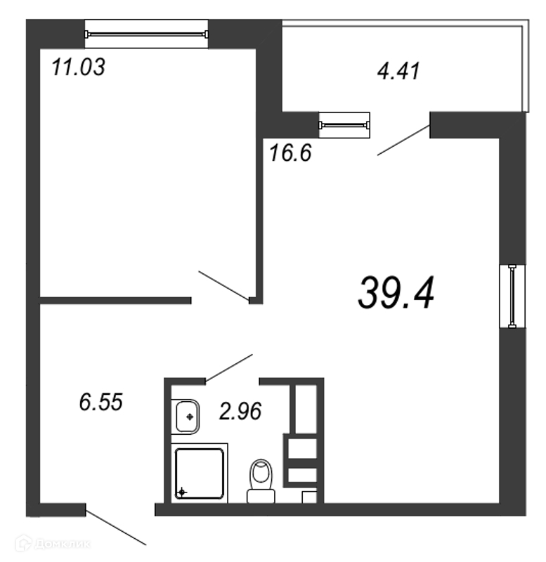 Общая площадь 39.4 м2